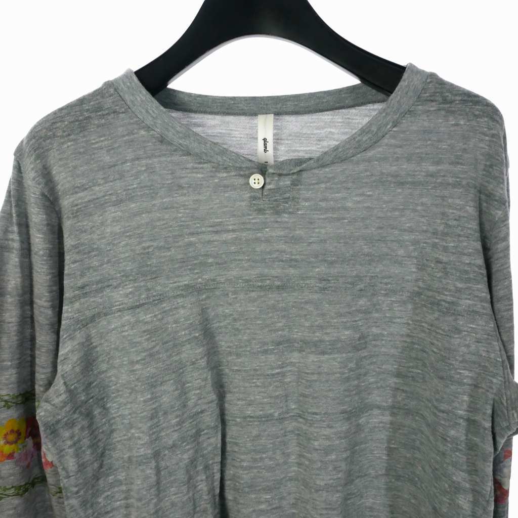 グラム glamb Tシャツ カットソー 長袖 花柄 霜降り 2 グレー メンズ