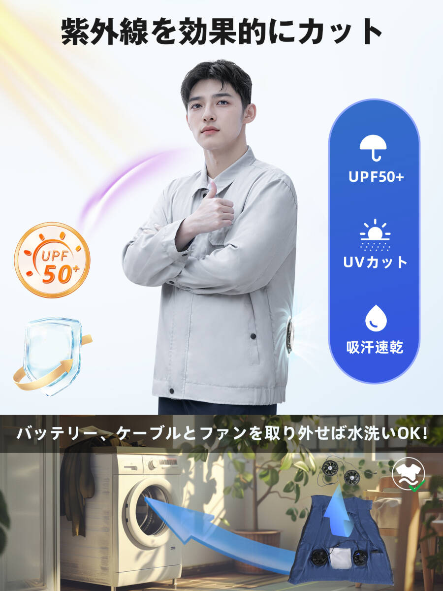 空冷服は簡単に取り付けられます。空気を循環させることにより、体感温度を下げます。4段階風量調節可能、需要に応じて風量を切り替えられます。通勤、通学、ガーデニング、現場仕事、配達作業、ハイキング、釣りなど様々なシーンで活躍できます。