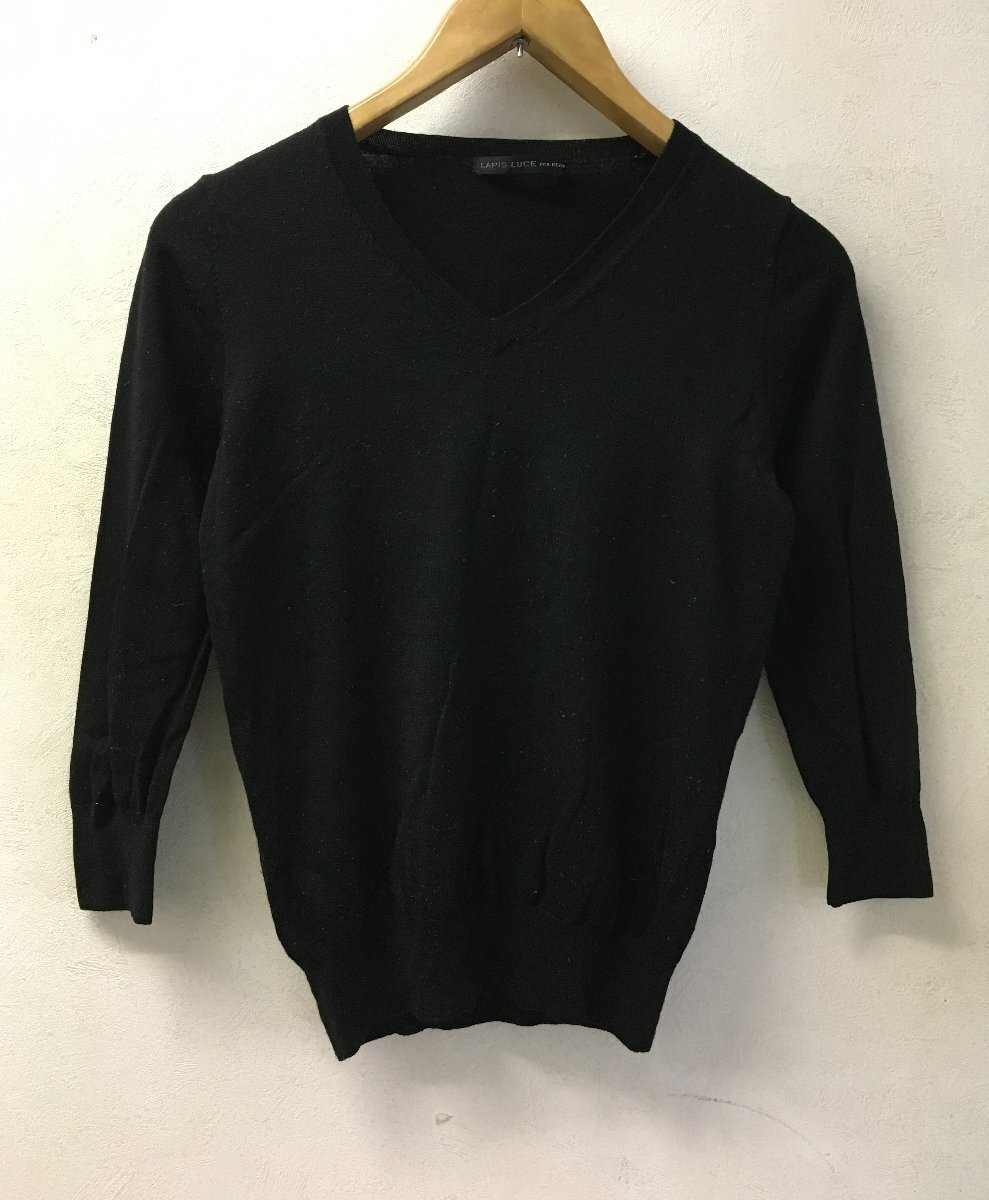 ◆ ◆LAPIS LUCE BEAMS Vネック ハイゲージ ニット 黒系 毛羽立ちあり
