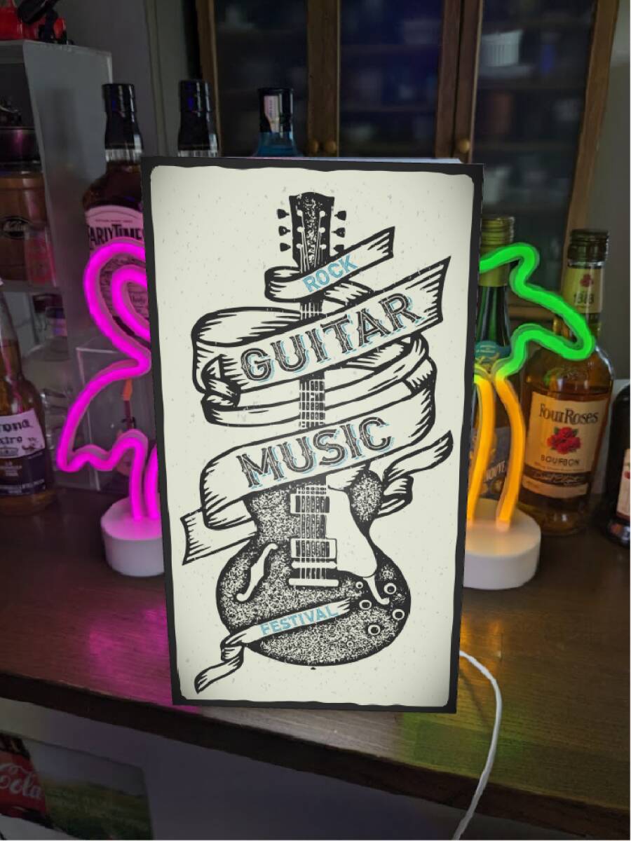 ★画鋲で壁に簡単設置★ 店舗、自宅、ガレージ、オフィスの窓際・カウンター・棚・テーブルやちょっとしたスペース、車内・キッチンカー・屋台・イベント・パーティーなどに 【エレキギター ロックン・ロール】電飾看板Lサイズです★ 勿論、置物としても◎ オーダー無料、プレゼントにも大変好評頂いております★ ◆サイズ◆20センチ×40センチ×奥行き7センチ ◆材質◆本体(アクリルプラスチック製)・表示面(IJバックライト発光フィルム貼り) ◆電源◆USB供給電源(家庭用コンセントコネクタ付き) 〇他サイズ〇 ●Mサイズ 150mm×300mm ●LLサイズ 300mm×600mm ●3Lサイズ 400mm×800mm ●4Lサイズ 500mm×1000mm ◆オリジナルデザイン・オーダーも承っておりますので、お気軽にお問い合わせください。 自社製造製品 店舗 自宅 キッチンカー フードトラック 屋台 パーティー イベント サイン ランプ ライト 照明 看板 インテリア雑貨 置物 雑貨 テーブル カウンター 電飾看板 電光看板 光源の種類...LED
