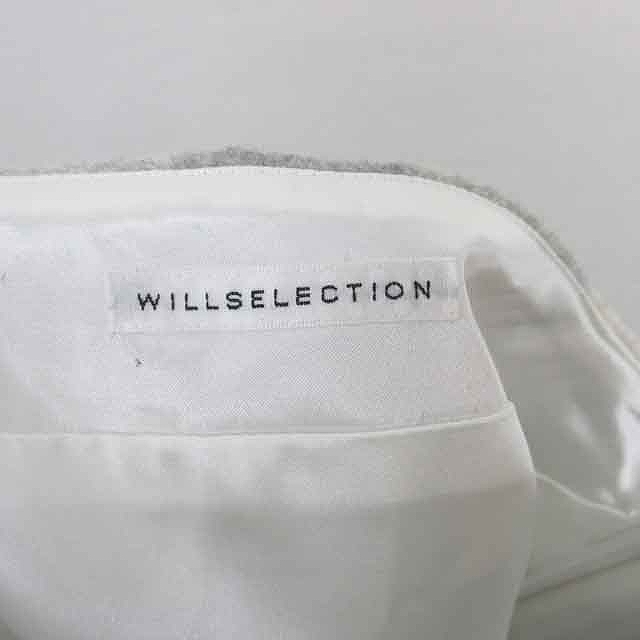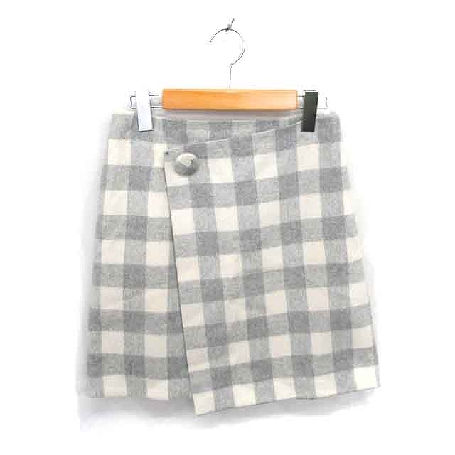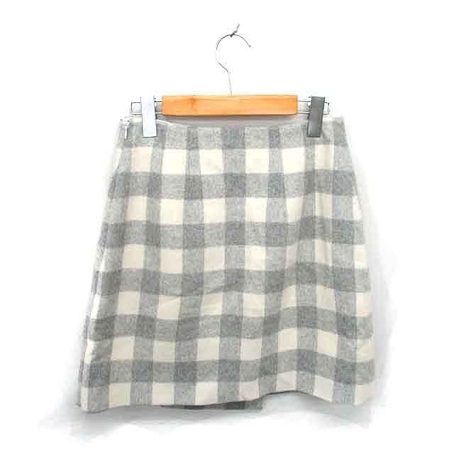 ウィルセレクション WILLSELECTION 台形 スカート ミニ ラップスカート風 チェック ウール M グレー アイボリー /TT