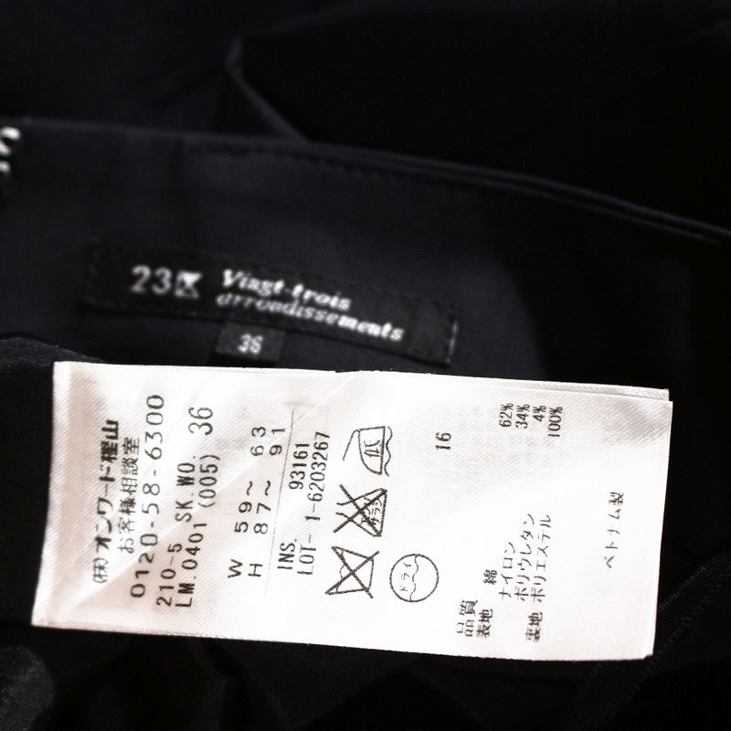 美品 23区 株) オンワード樫山 春 夏 ハリ ストレッチ コットン タイトスカート スーツ 7号 36 ブラック 黒 定番 シンプル ビジネス