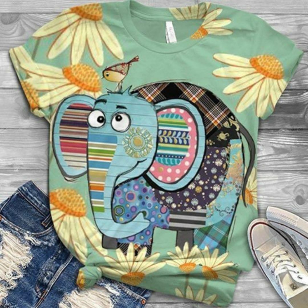 2XL 大人気 韓国版 動物印象 可愛い柄 Tシャツ 半袖 ゆったり 緑色 ゾウ