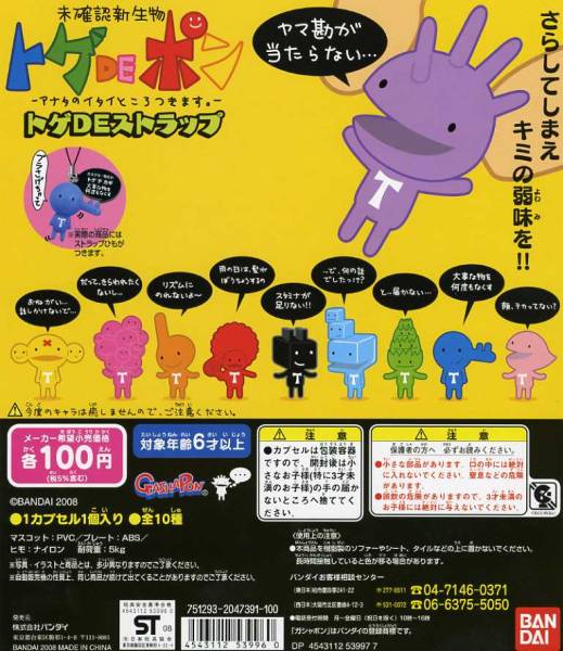 ◆バンダイ 未確認新生物 トゲDEポン トゲデポン トゲDEストラップ…全10種+台紙 (さらしてしまえ きみの弱味を!!) フィギュア マスコット