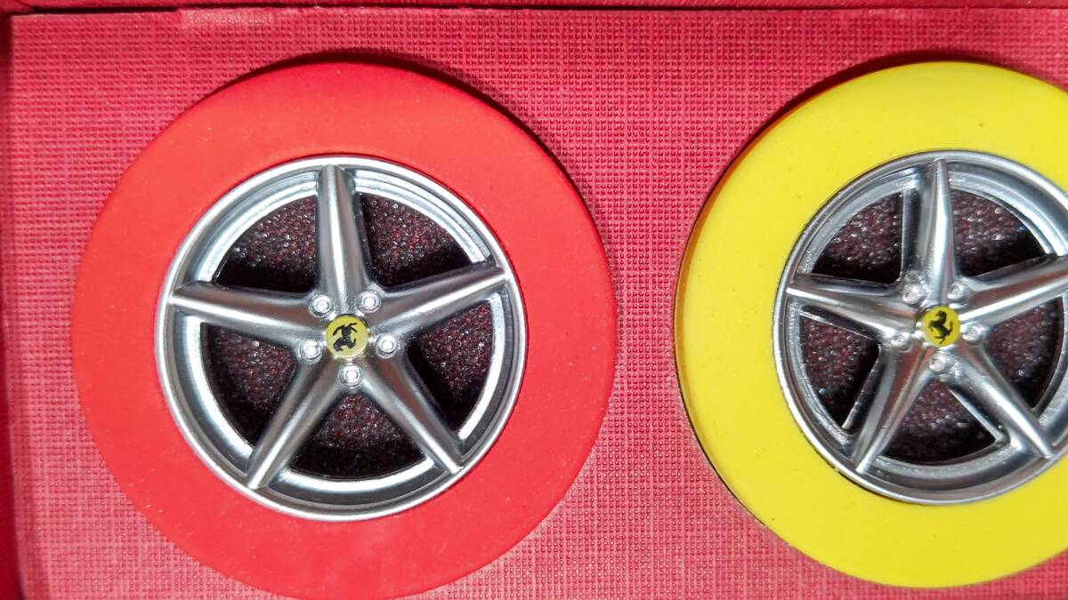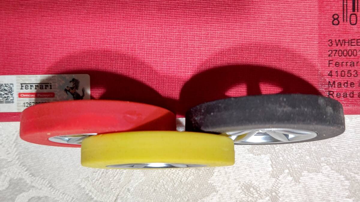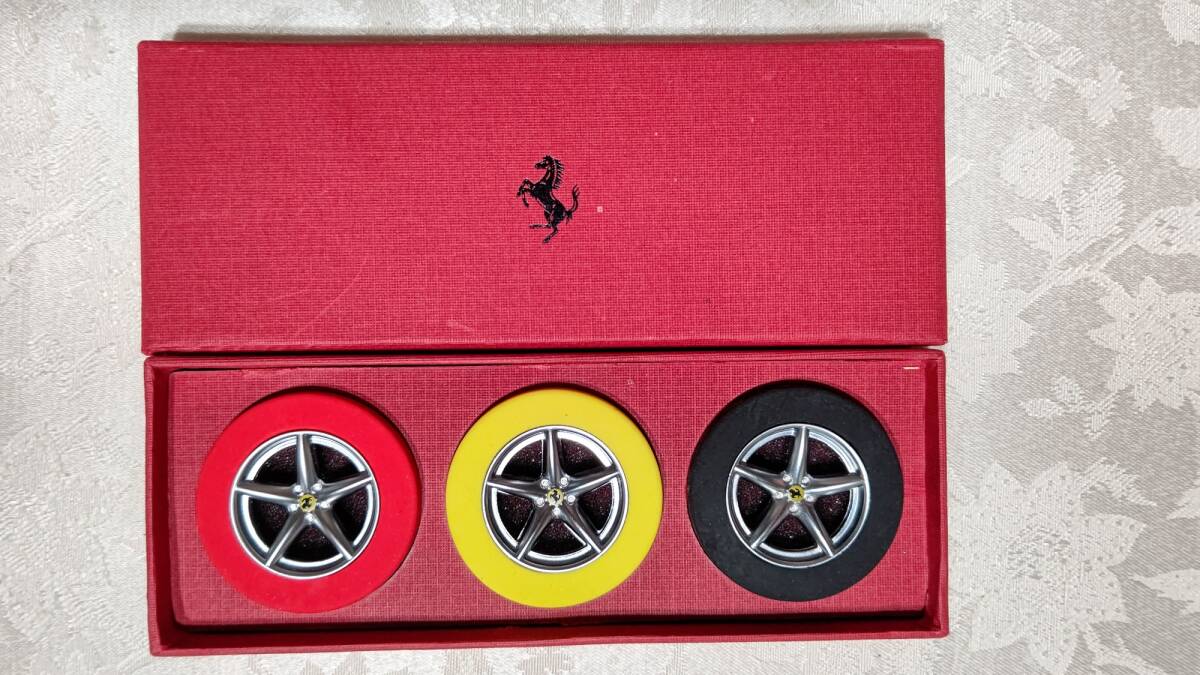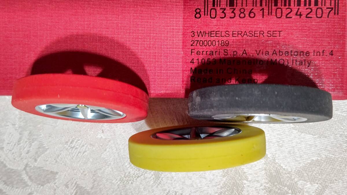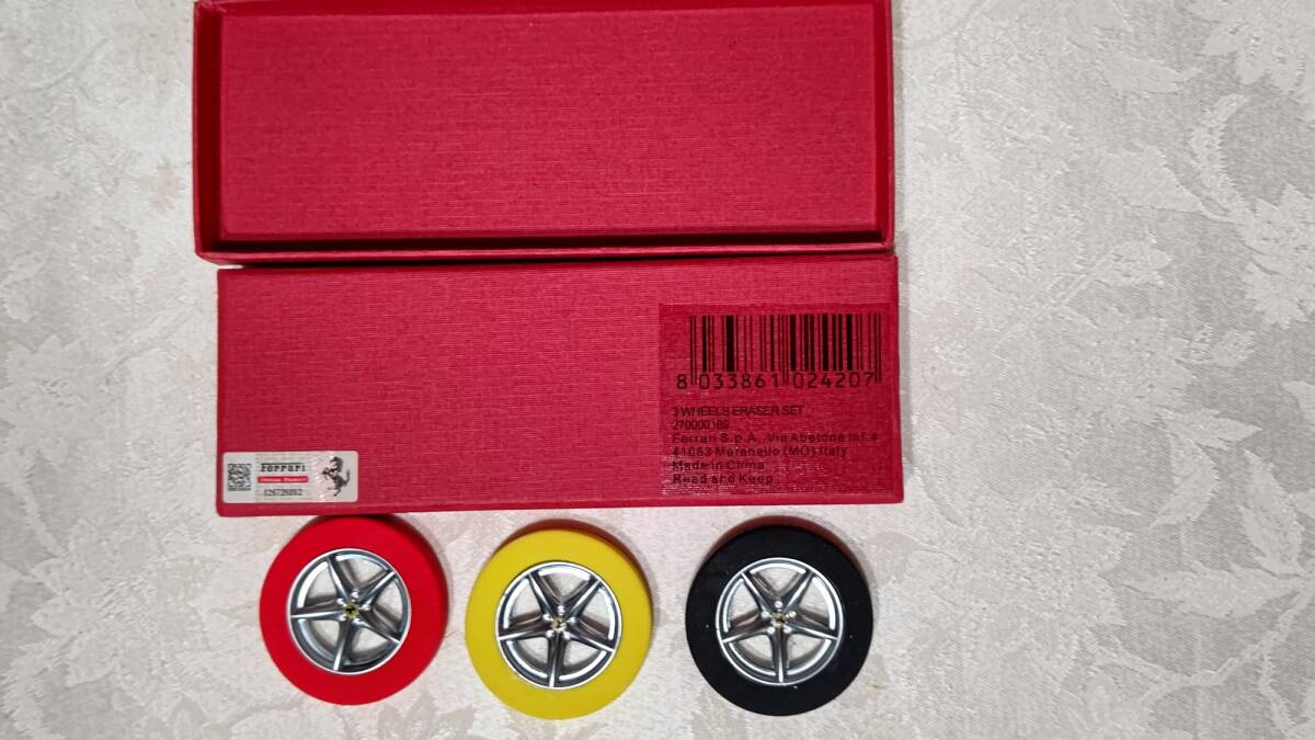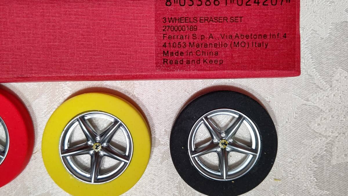 615-2 Ferrari フェラーリ 3 WHEELS ERASER SET 3本のタイヤ型消しゴムセット(赤・黒・黄)箱入り