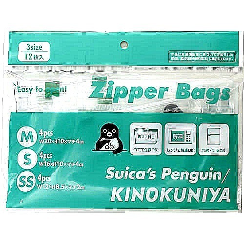 Suicaのペンギンのイラストが入ったSS・S・M各サイズ4枚のアソートパックです。
