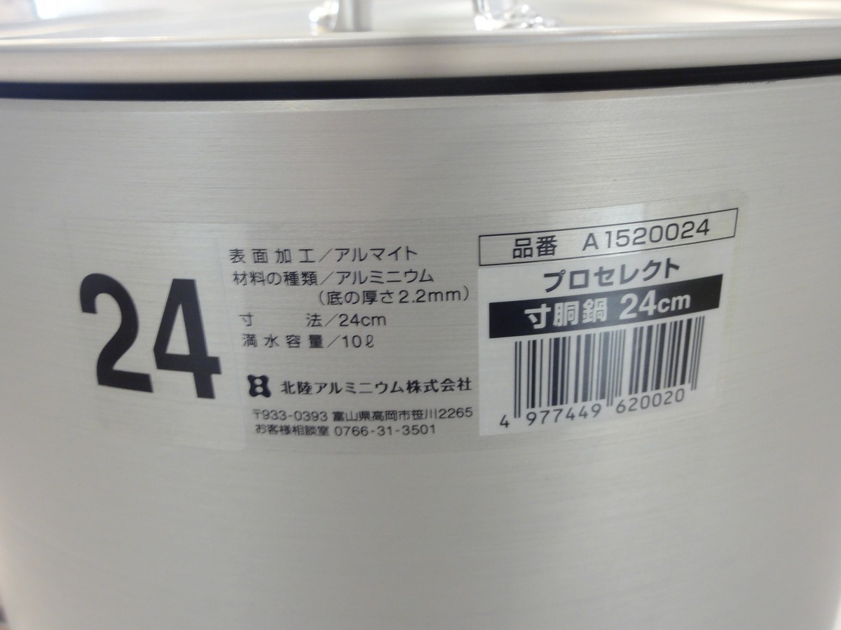 TTOWN 橿原店 アウトレット品(未使用品) 北陸アルミニウム HOKUA プロセレクト 24㎝ アルミ寸胴鍋 10リットル ② 保証なし現状販売品