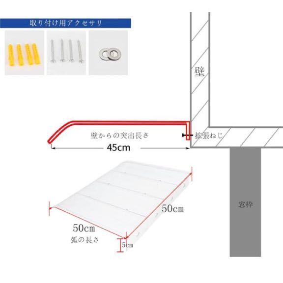 雨よけ 屋根庇、 テラス ポリカーボネート ひさし 後付け 玄関 梅雨対策 uvガードです 住宅用 窓オーニング、 屋外 シェルター カメラ 自転車 エアコン で雨を防ぎます、 頑丈で耐久性 組み立てが簡単 (色 : 明確な, サイズ : 50x50cm(2pack))