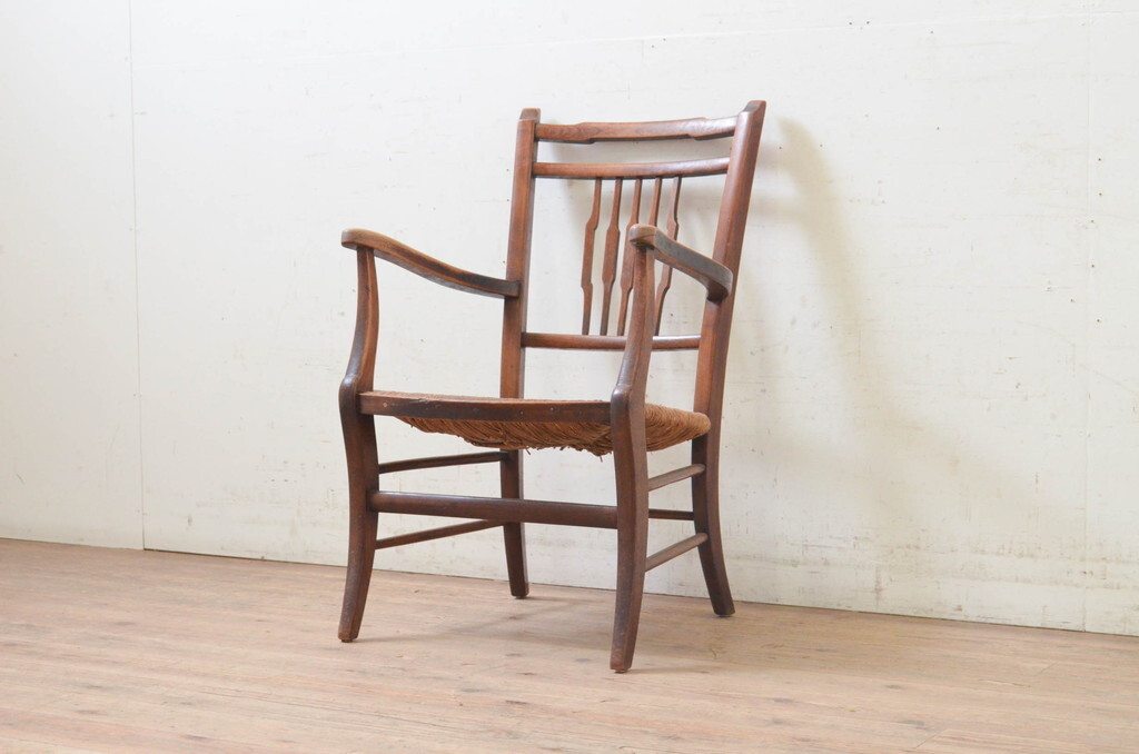 和製ビンテージ 吉田璋也(よしだしょうや)デザイン? ゆったりとした座り心地が魅力的なラッシアームチェア(ダイニングチェア、椅子、イス、ヴィンテージ)(R-073725)