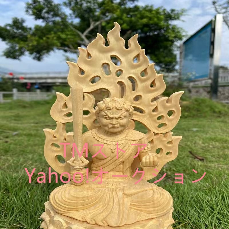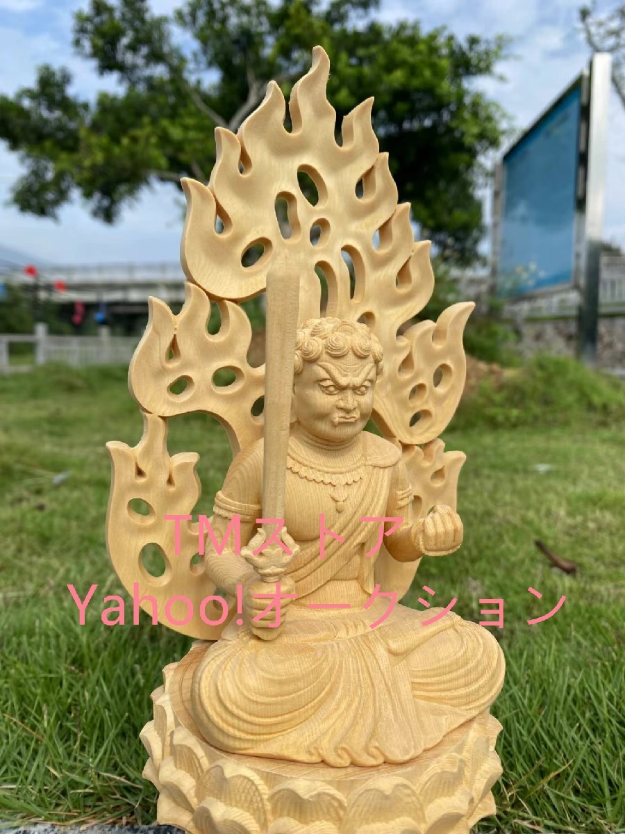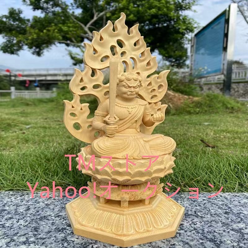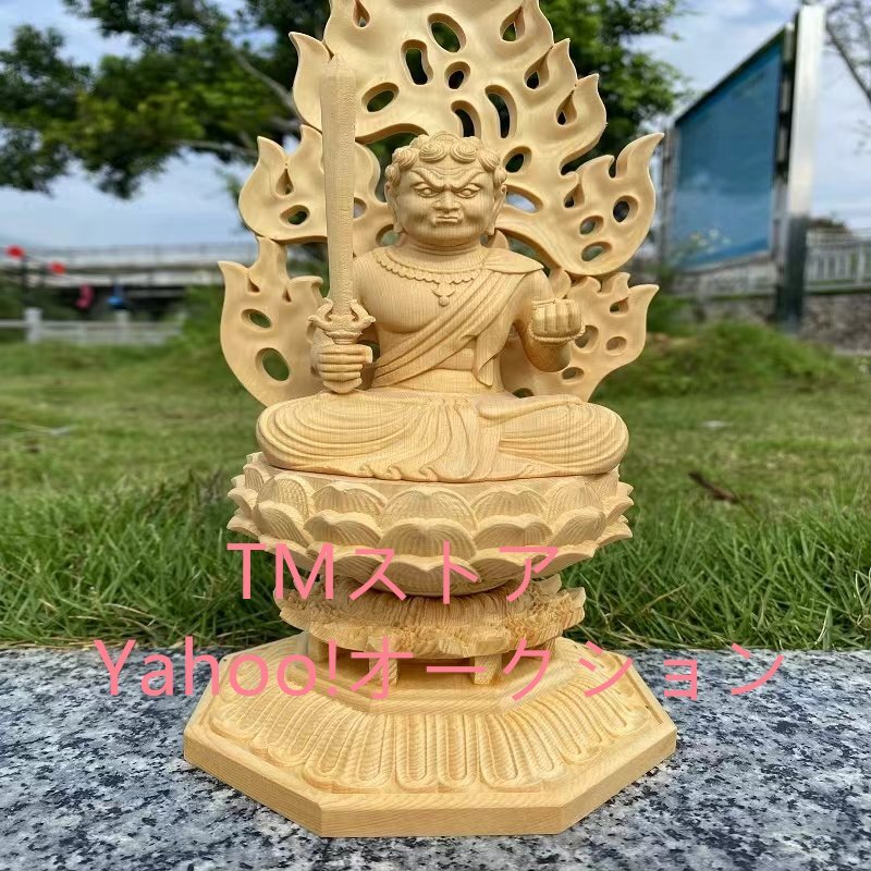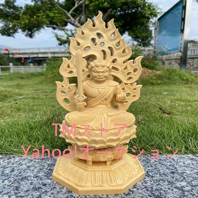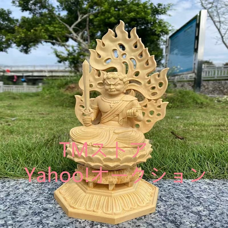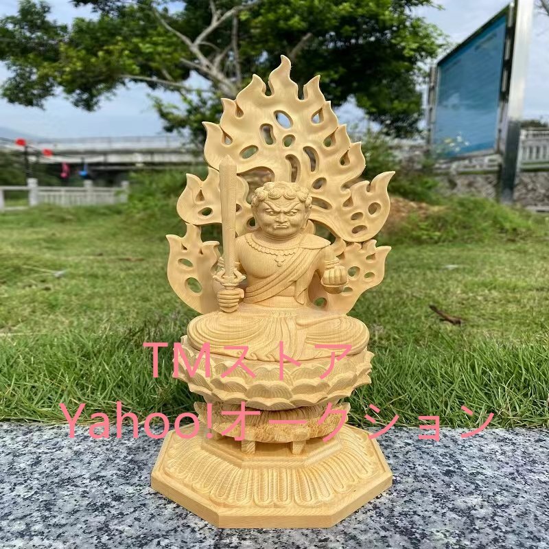仏像 不動明王 仏壇仏像 桧木製 木彫り 八角台座 火炎光背 酉年 守り本尊 祈る 厄除け(高さ28cm×巾12cm×奥行12cm)(不動明王)