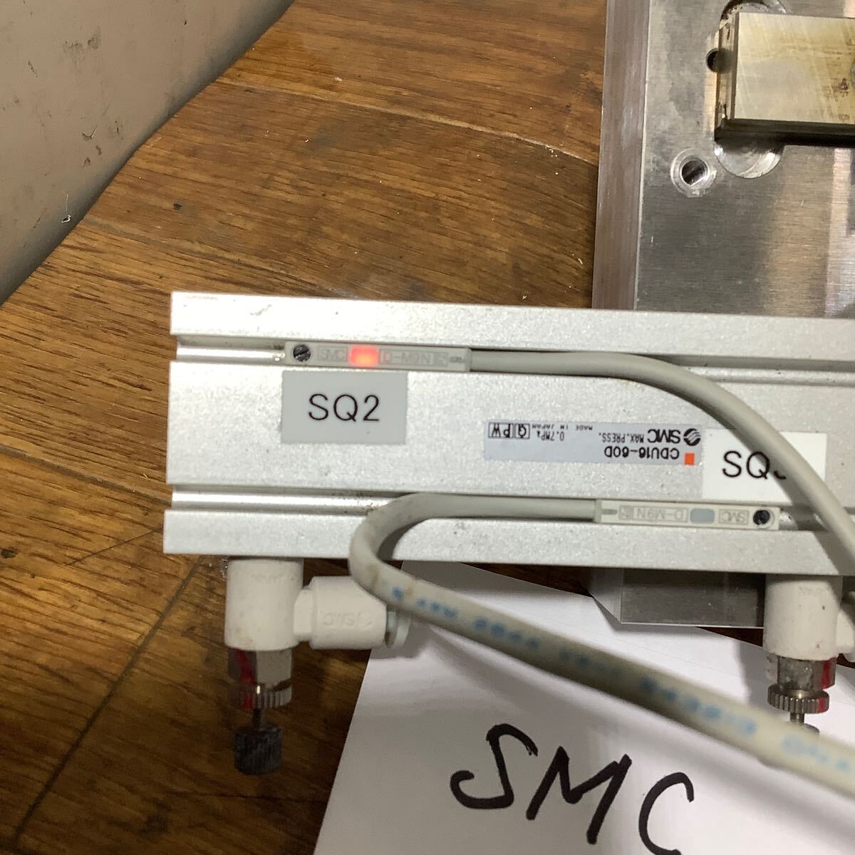 商品]SMC エアーシリンダー「CDU16-60D」(センサー付き)ガイドレール付き中古品現状渡し品です。