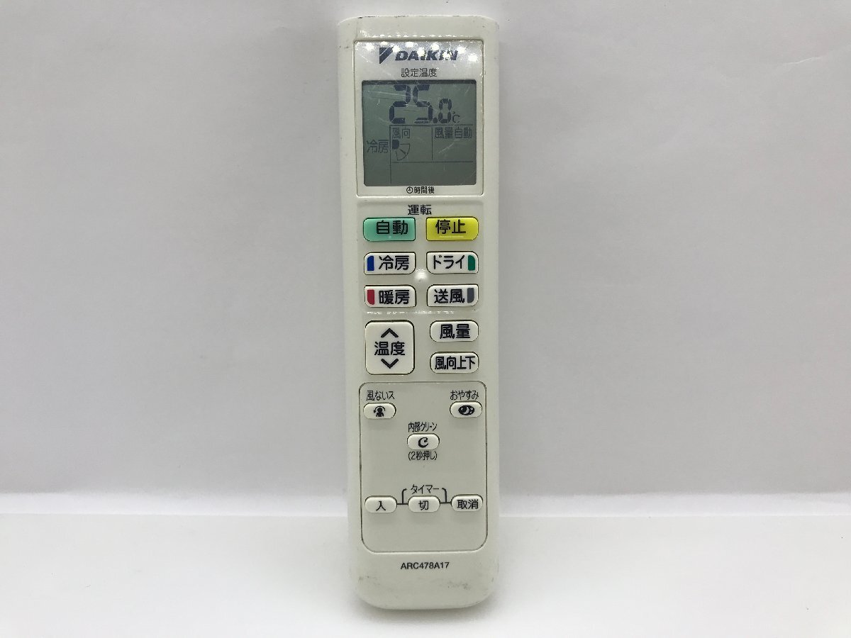 ダイキン エアコンリモコン ARC478A17 中古品C-9107