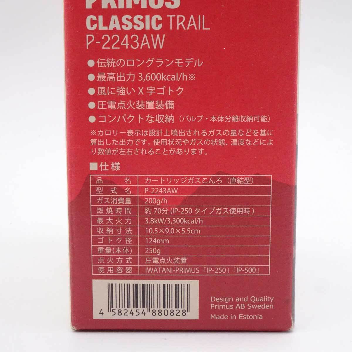 | ※商品は画像にあるものがすべてとなります。 【仕様】 ブランド:プリムス タイプ:クラシックトレイル ストーブ バーナー 型番:P-2243AW 重量:250g 収納時サイズ:10.5×9.0×5.5cm ガス消費量:200g/h 出力:最大3.8kW/3300kcal/h PSマークの種類:PSLPG 届出事業者名:イワタニ・プリムス株式会社 登録検査機関:JIA 詳細備考:ゴトク径124mm |
