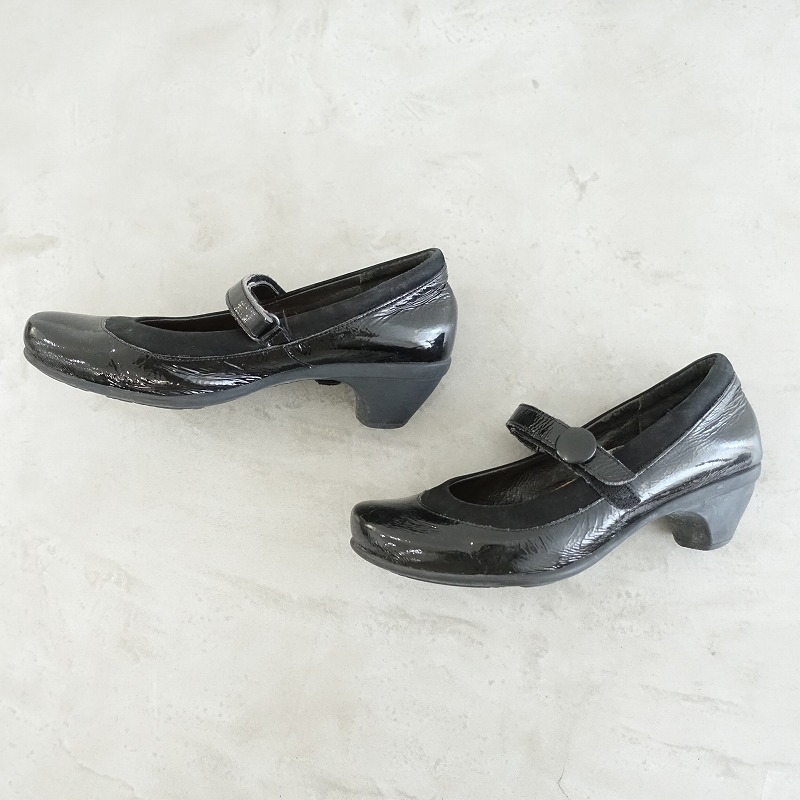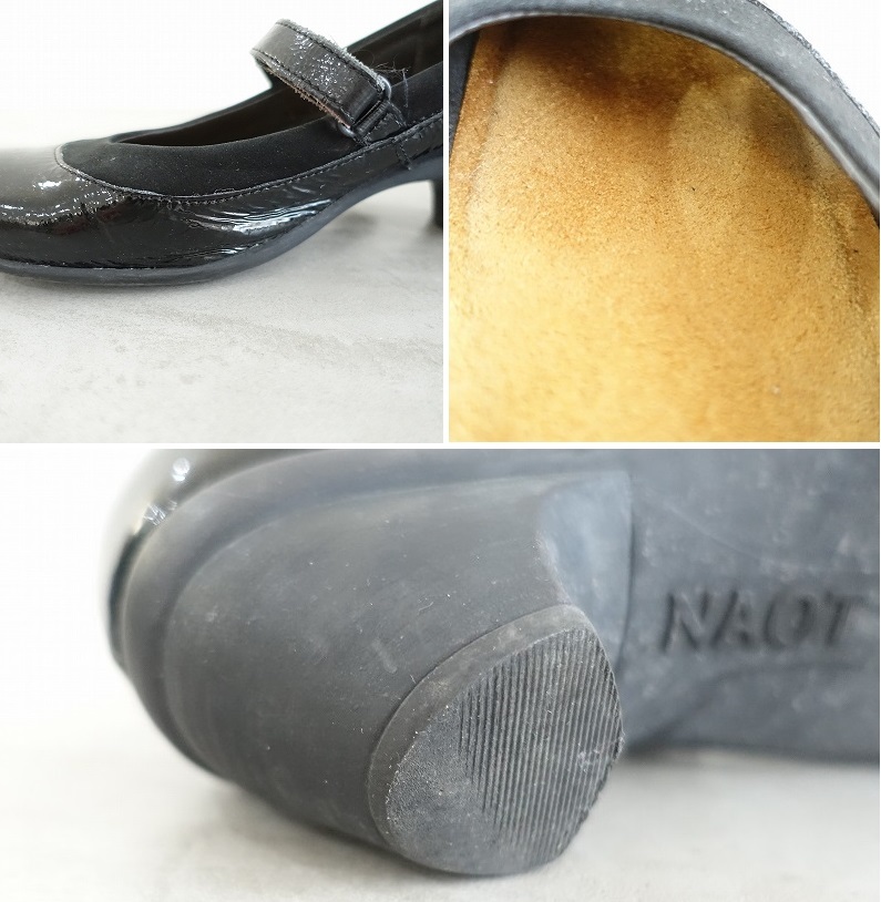 ユーズドで、アッパーのエナメルレザーに履きジワ、インソールに指跡、ヒール部に減りが見受けられますが、目立ったダメージはございません。ご理解いただける方のご購入をお待ちしております。 |