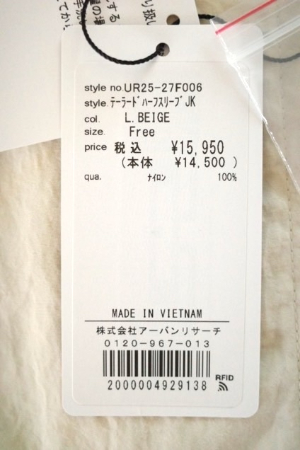 未使用品 URBAN RESEARCH アーバンリサーチ テーラードハーフスリーブジャケット 羽織 ライトベージュ サイズfree