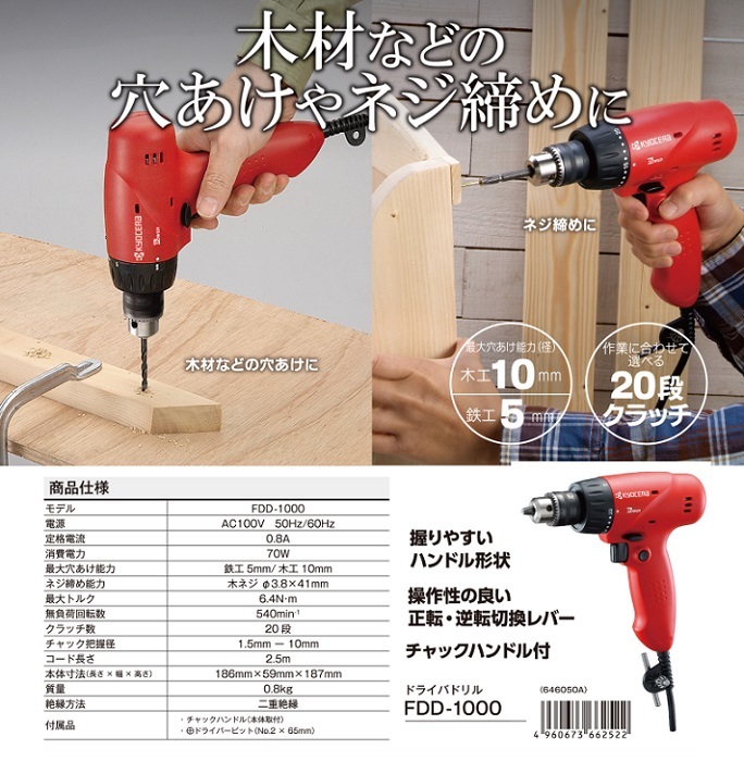 京セラ(旧リョービ)製の100VドライバドリルのFDD-1000です。