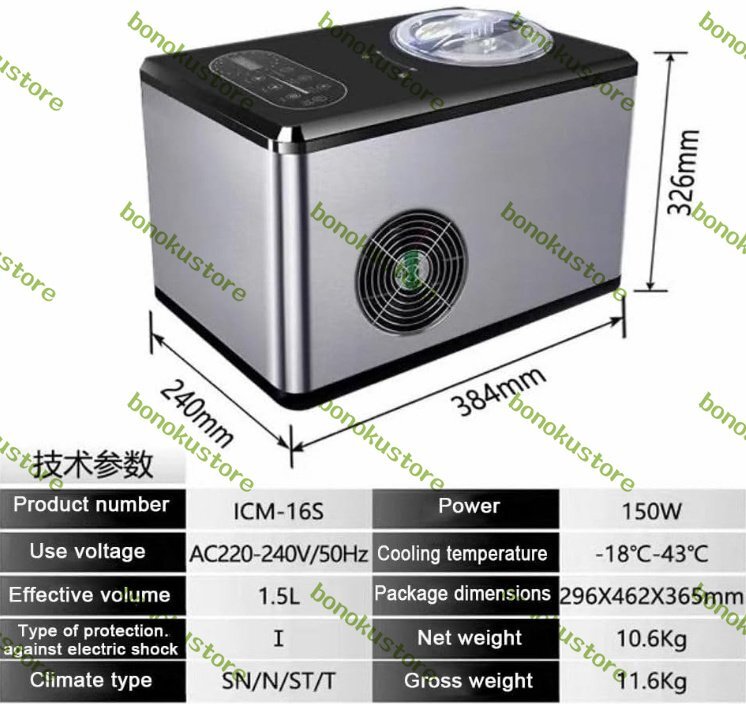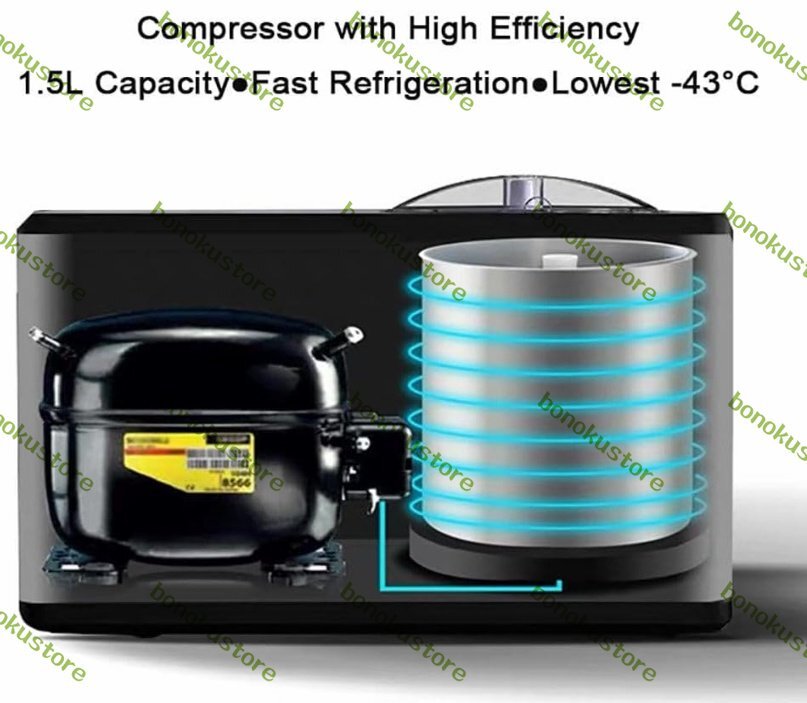 1.5Lアイスクリームマシン、150W全自動業務用家庭用アイスクリームメーカー、-43℃低温、自家製健康アイスクリーム