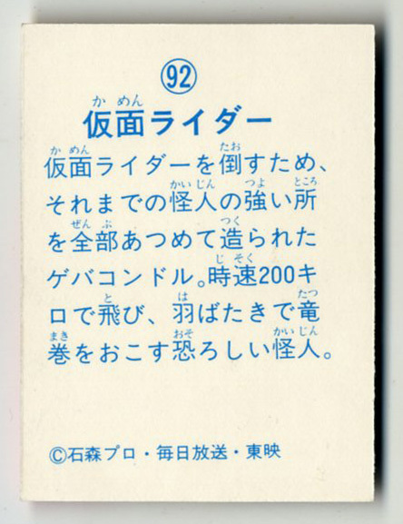 | ●山勝 仮面ライダー ミニカード 92番 石森プロ・毎日放送・東映 即決 | |