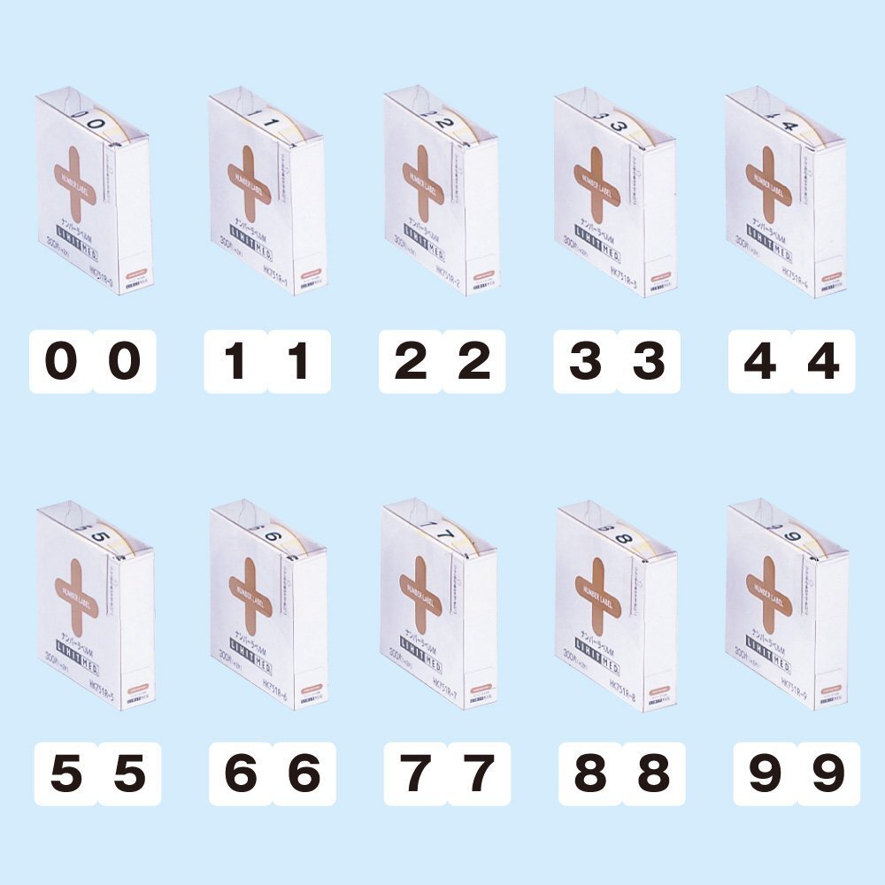 ロールタイプのナンバーラベル。貼りやすい工夫・中央部に筋押しを入れました