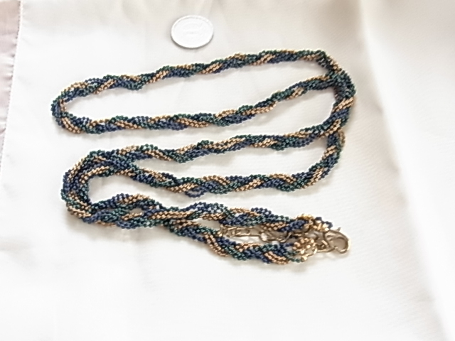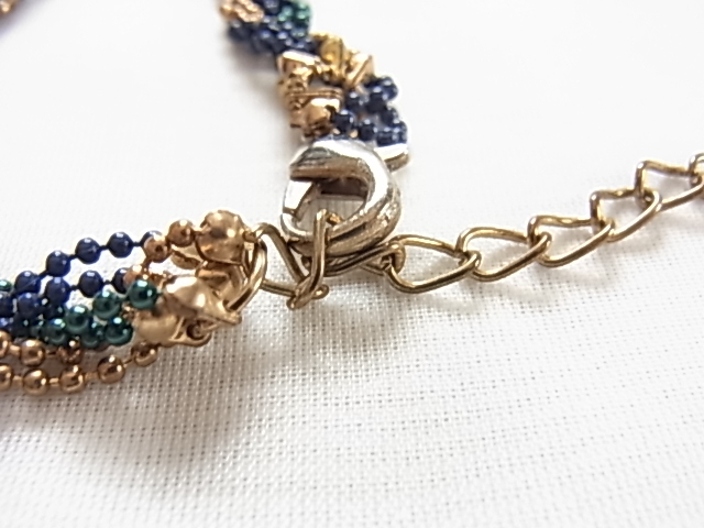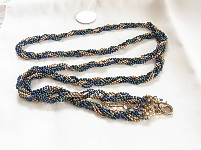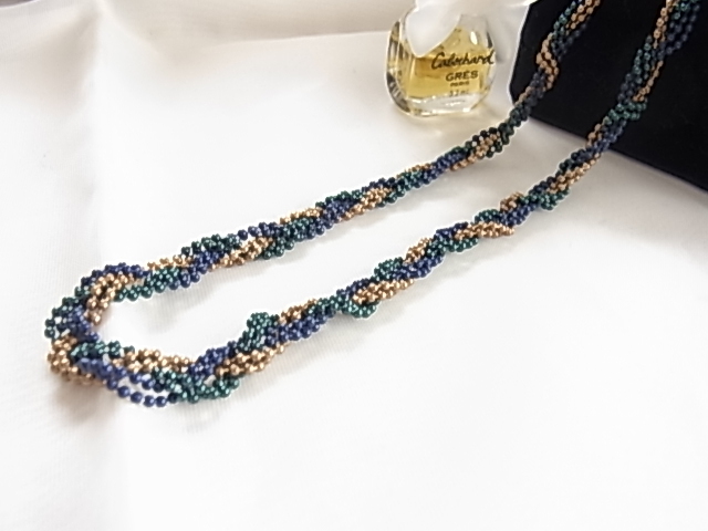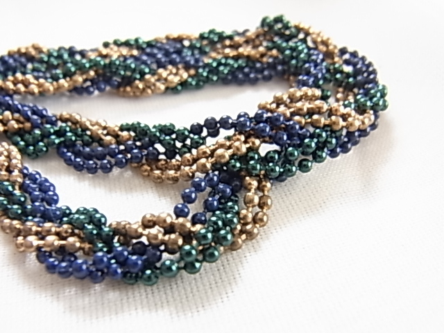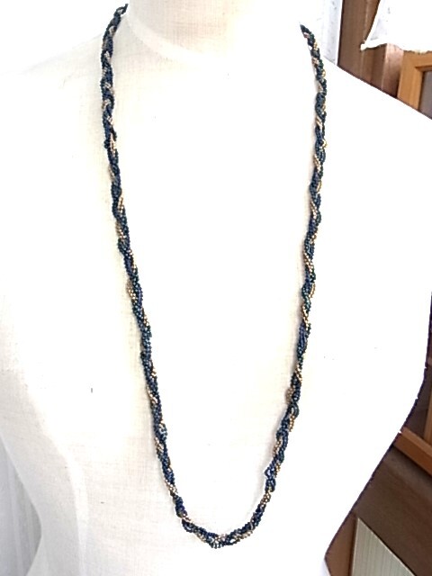 ビンテージ/ヴィンテージ ロイヤルブルーとロイヤルグリーンとゴールドトーンの美しいツイストデザイン 軽量の素敵ロングネックレス◎◎