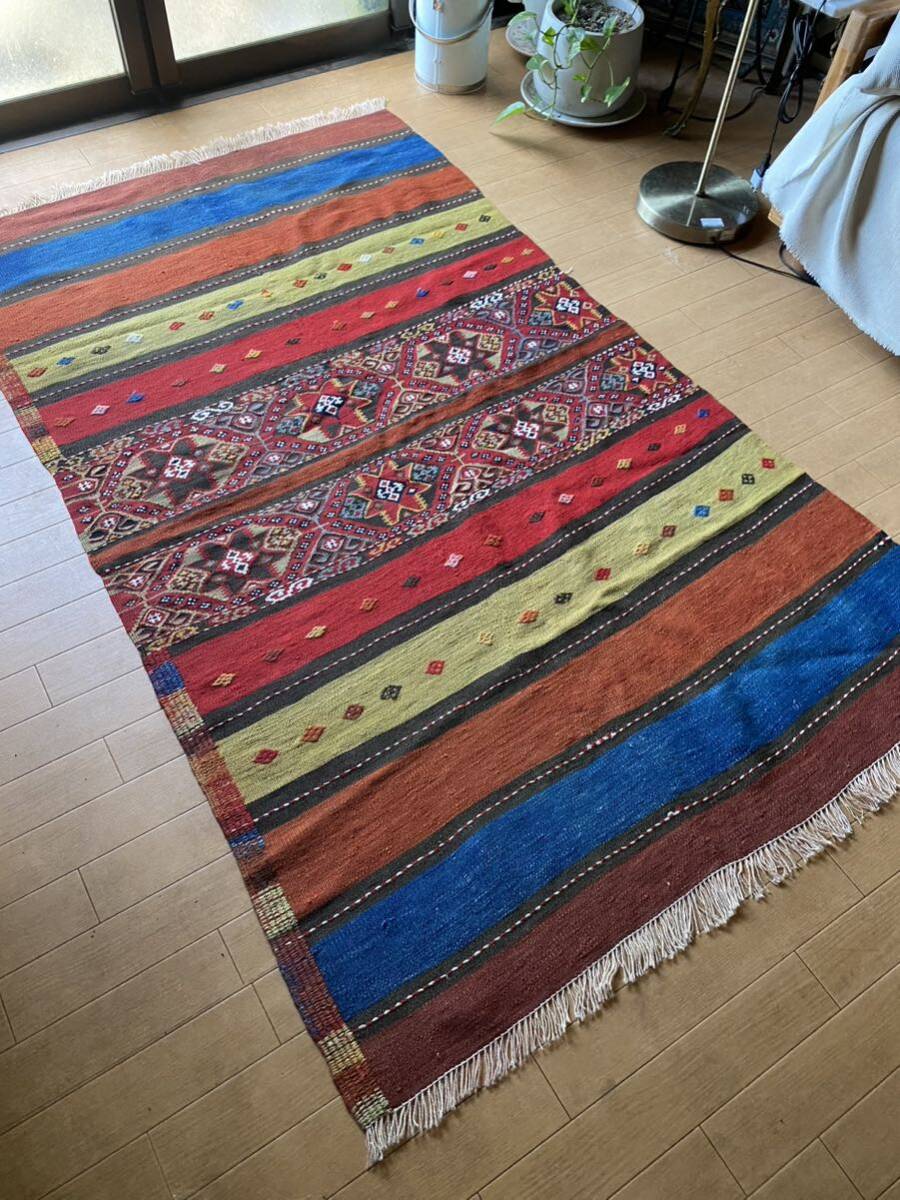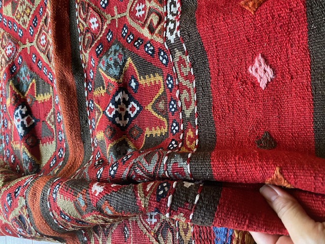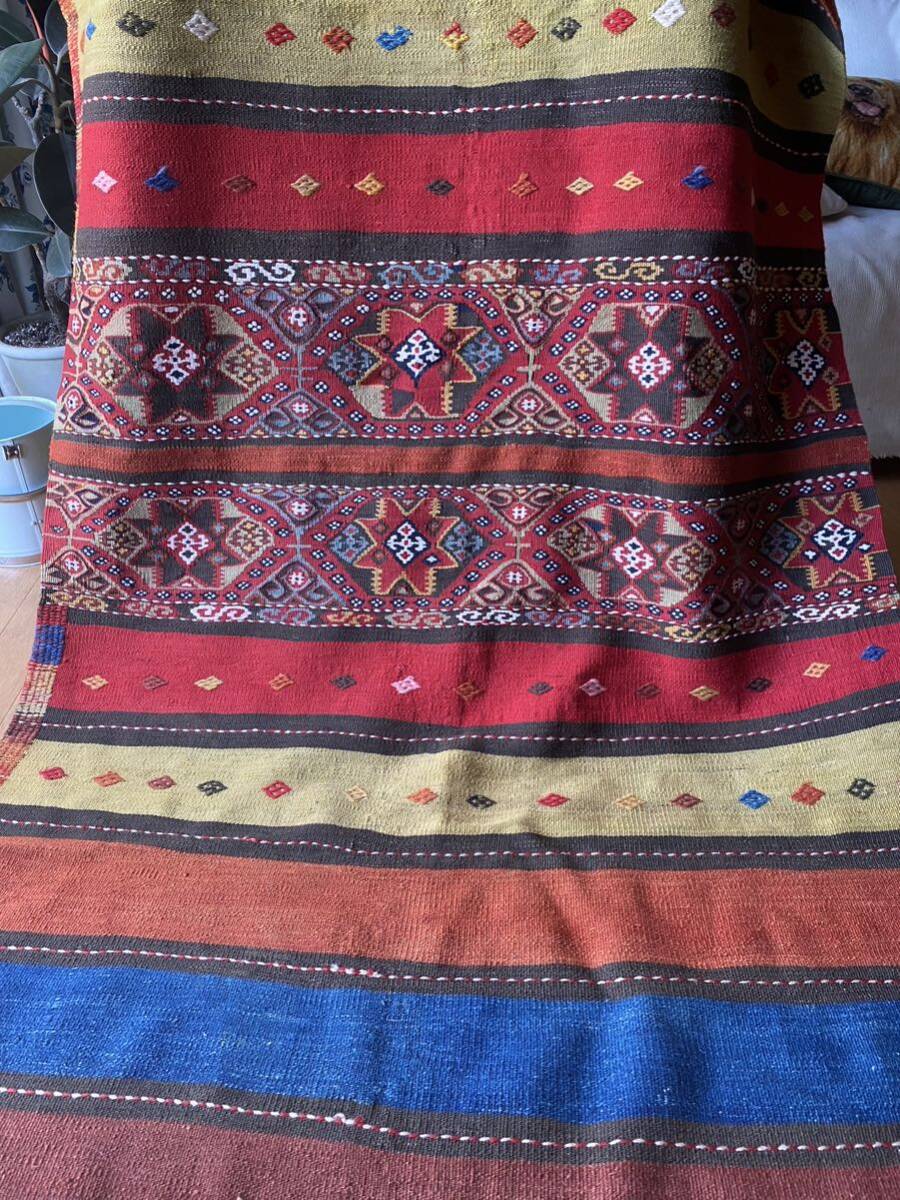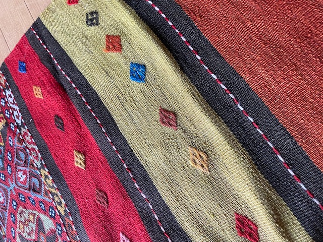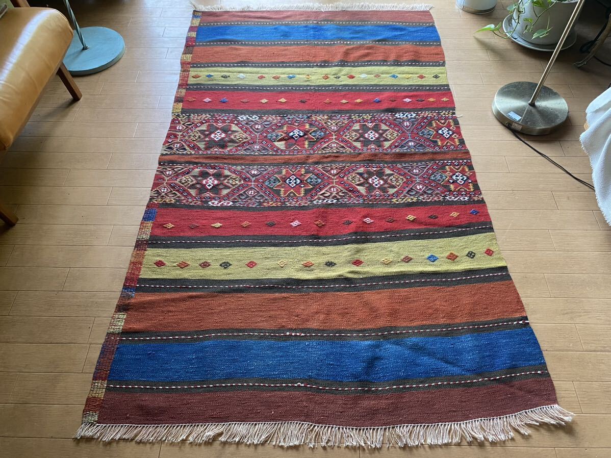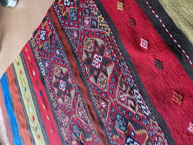 こちらの商品をご検討いただくにあたり、キリムってなに?どんなもの?とおもわれる方もいらっしゃるとおもいます。手織りのものですか?産地はいろいろありますか?とご質問もいただいたりします。キリムご購入、初めての方はこちらのページをご覧ください。ほかにもいろいろキリムが載っておりまして、ご参考にしていただけるとおもいます。織りや産地をご参照していただければ よりキリムについて、お分かりいただけるとおもいます。ほかの産地の織りや色あいと比べ て是非こちらのオークションにご入札ください!!