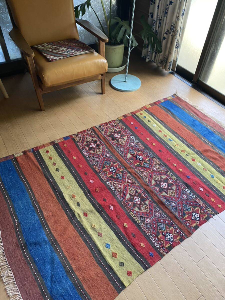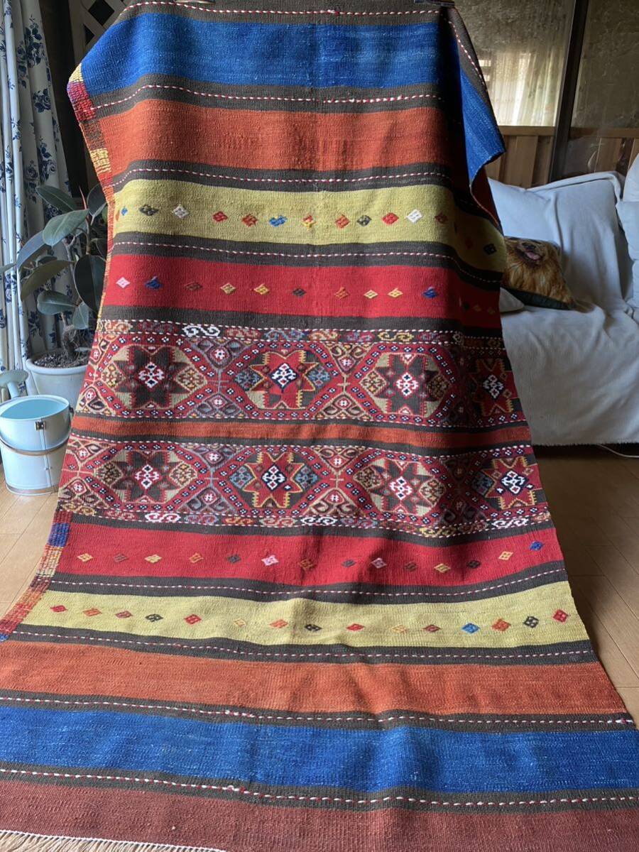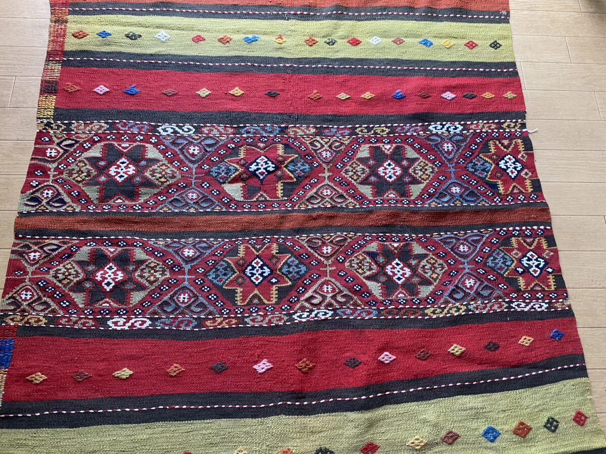 こちらの商品をご検討いただくにあたり、キリムってなに?どんなもの?とおもわれる方もいらっしゃるとおもいます。手織りのものですか?産地はいろいろありますか?とご質問もいただいたりします。キリムご購入、初めての方はこちらのページをご覧ください。ほかにもいろいろキリムが載っておりまして、ご参考にしていただけるとおもいます。織りや産地をご参照していただければ よりキリムについて、お分かりいただけるとおもいます。ほかの産地の織りや色あいと比べ て是非こちらのオークションにご入札ください!!