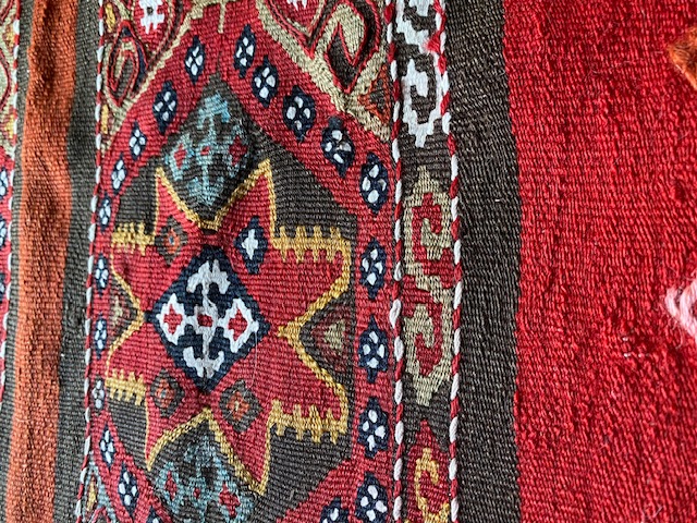 ソロモンの星のデザインも見事。マラティアのものですので、白い部分はコットンで織られています。 クルド独特のちからづよいピース。見事な色合いです。