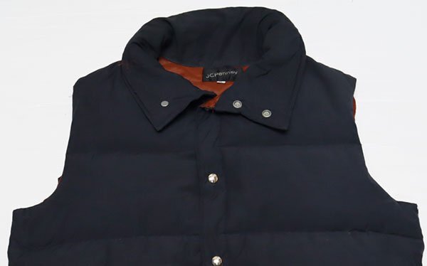 アメリカ買い付けの70-80年代頃のアメリカ製PENNEYSの外装は綿ポリ混で裏地内装はナイロンのダウンベストの黒系です。