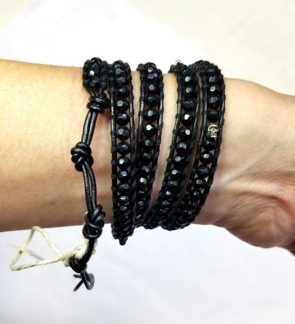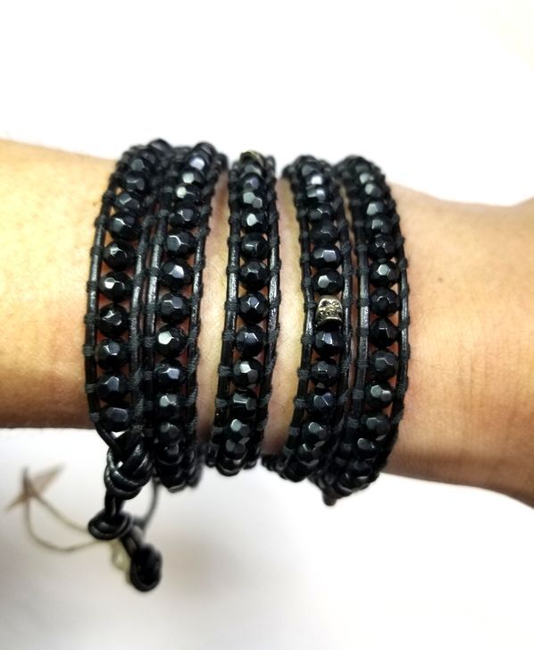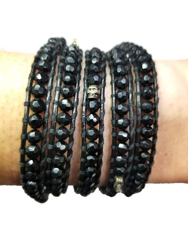 #古着屋大和 芸能人着用ブランド 試着のみ CHAN LUU チャンルー ブラックレザー オニキス シルバー スカル 髑髏 ラップブレス ブレスレット