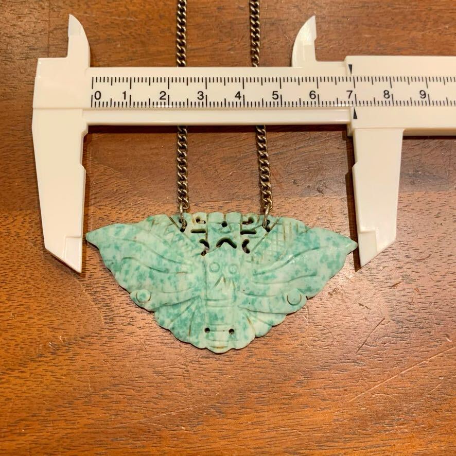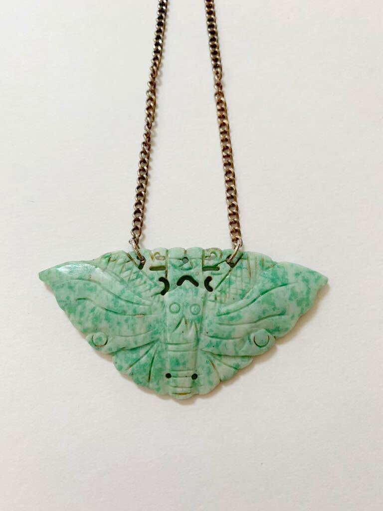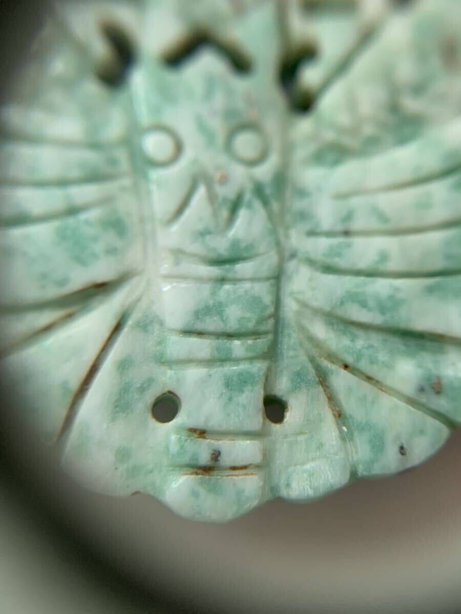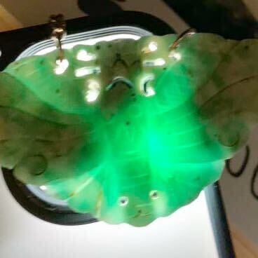 【希少】イギリス購入 ヴィンテージ 翡翠 蝶々 トップ ヒスイ アンティーク 彫刻 天然石 バタフライ レア 虫 中国 骨董