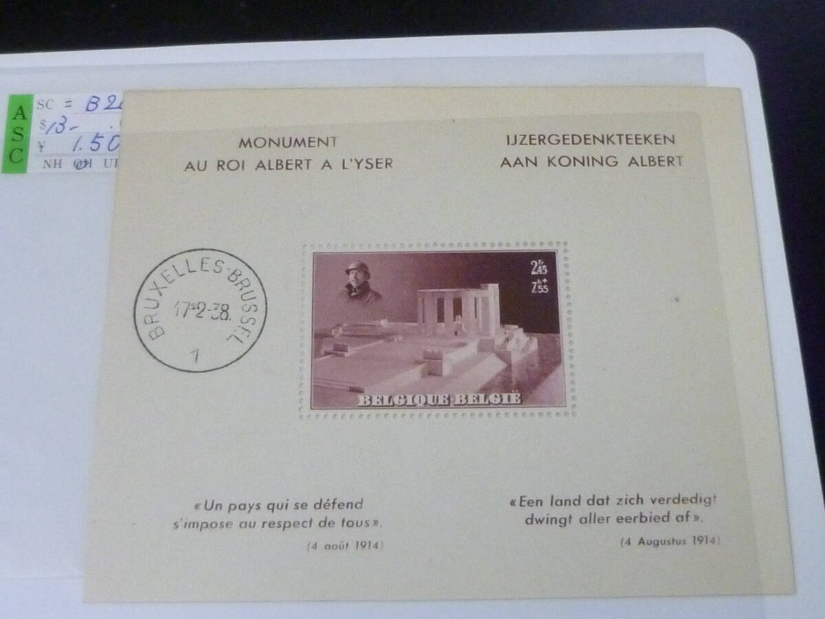 24 P 附加金№21 ベルギー切手 1937-38年 SC#B191・B208 小型シート 計2種 初日印付 【小売価格 6,300円】 ※説明欄必読