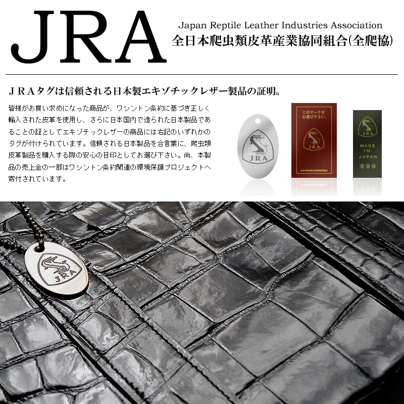国内のJRA(全日本爬虫類皮革産業共同組合)認定工場で製造されていますので安心してお使い頂けます。