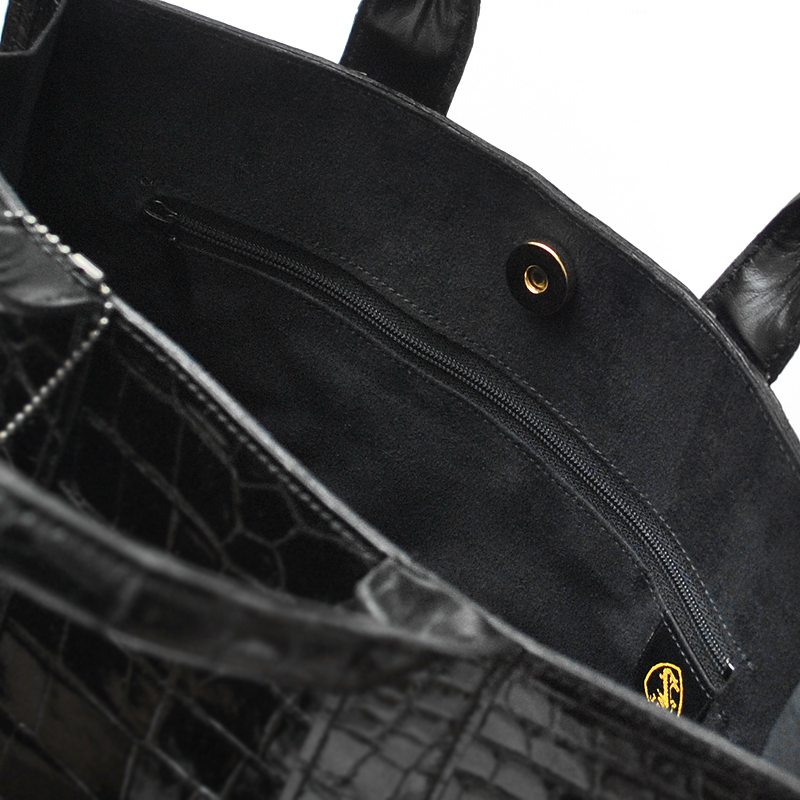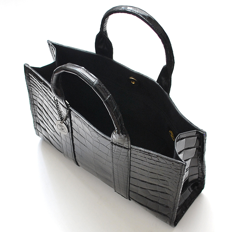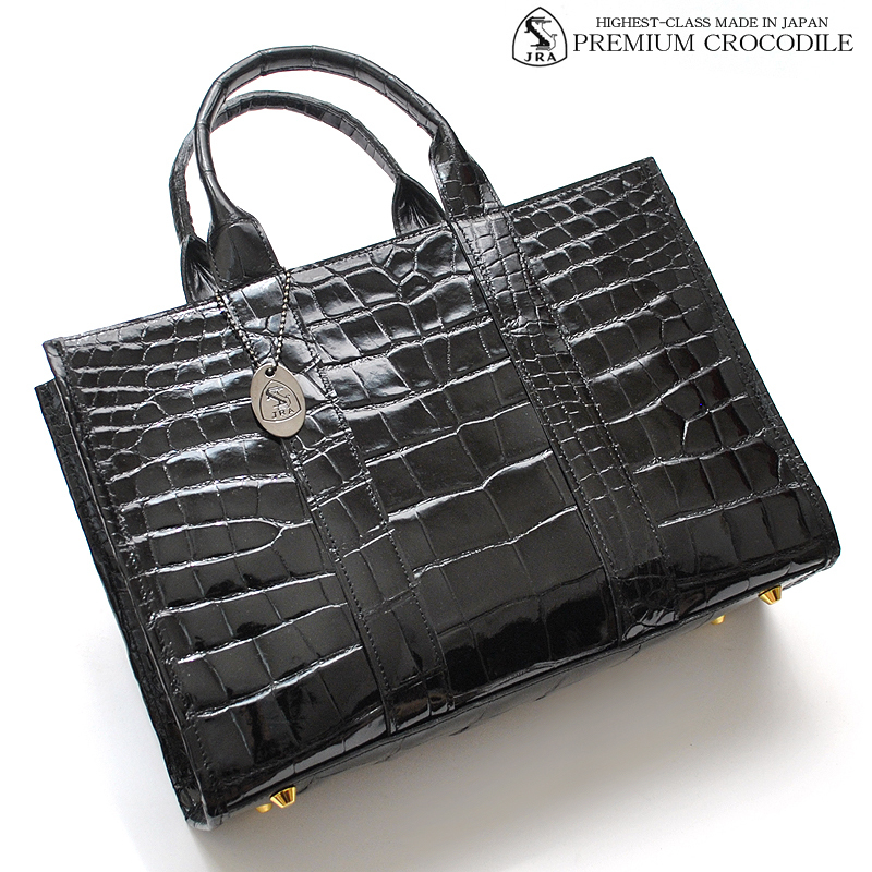 【物価高騰支援タイムセール】【送料込み】【期間限定】【新品】【税込み】本クロコダイル☆JRA認定☆日本製☆男女兼用☆トートバッグ艶黒