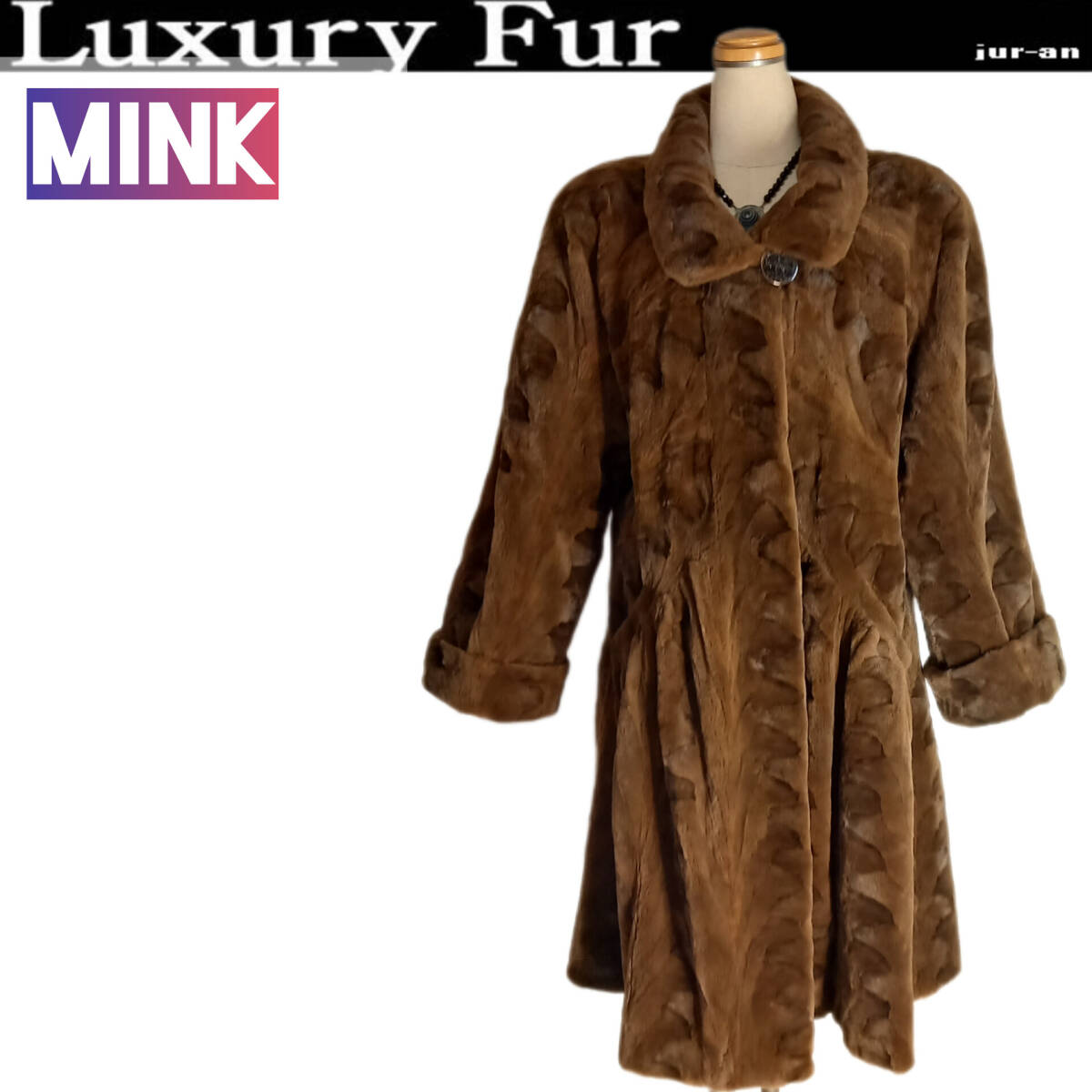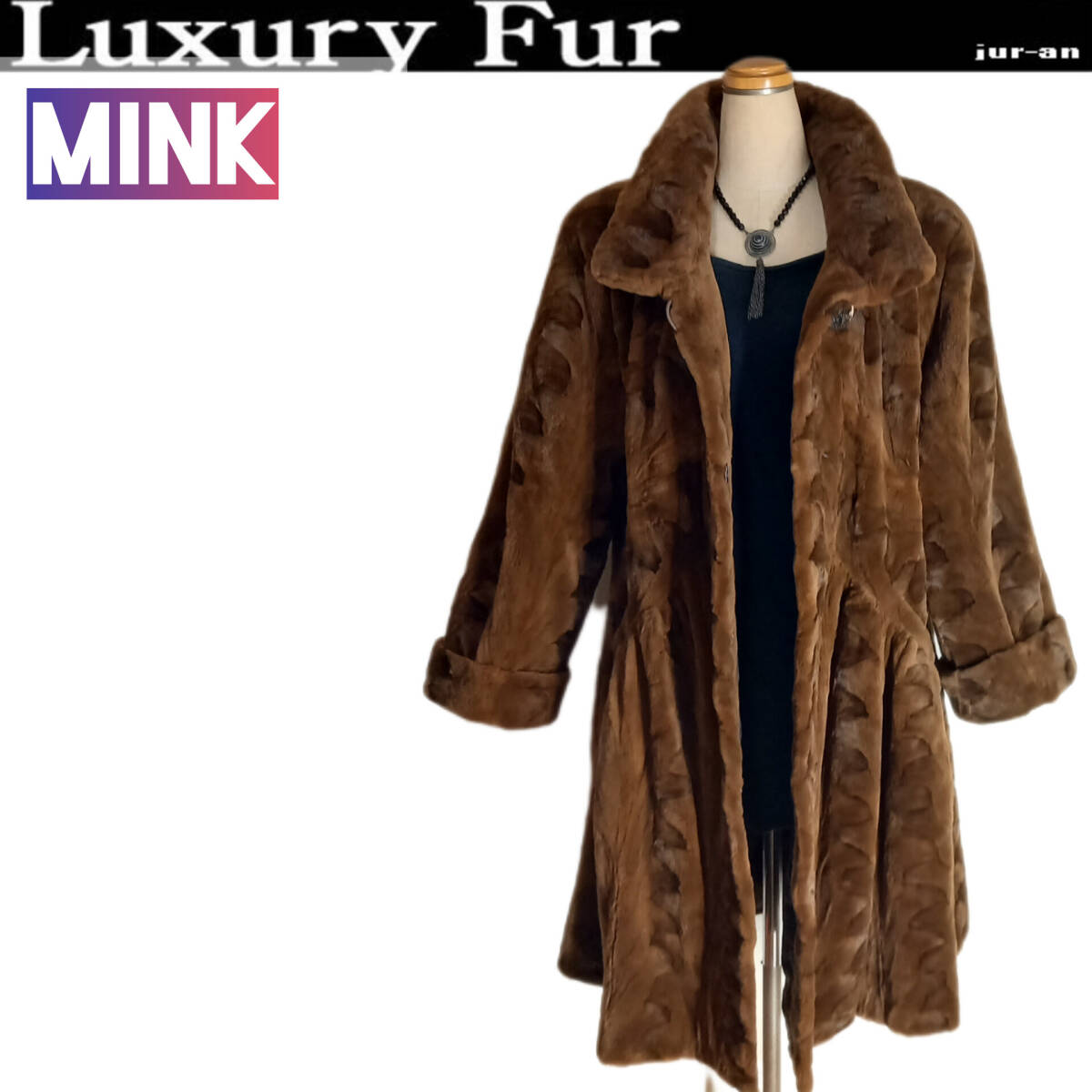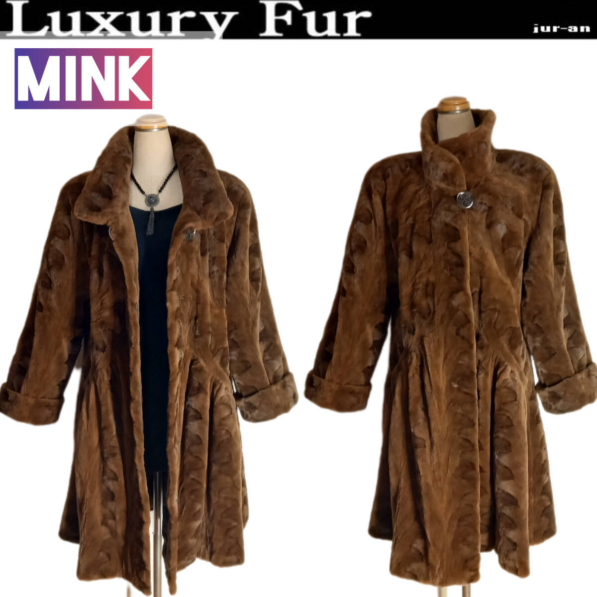 【毛皮●jur-an】特別企画・SALE!!! 普段にも使い易いベルベットの様な風合いの毛皮! フレアたっぷりエレガントの極☆ シェアードミンクデザインセミロングコート カラー:ブラウン | |