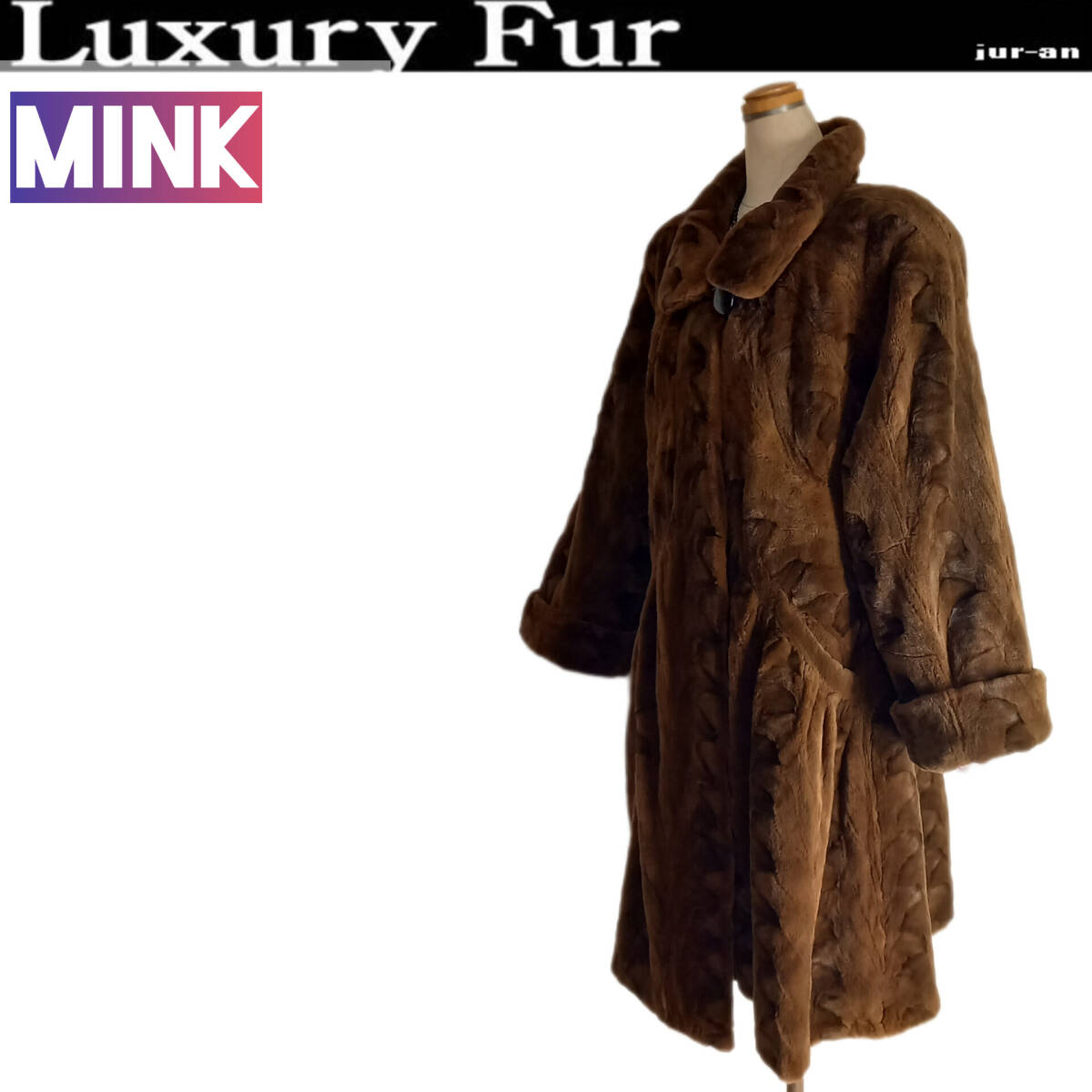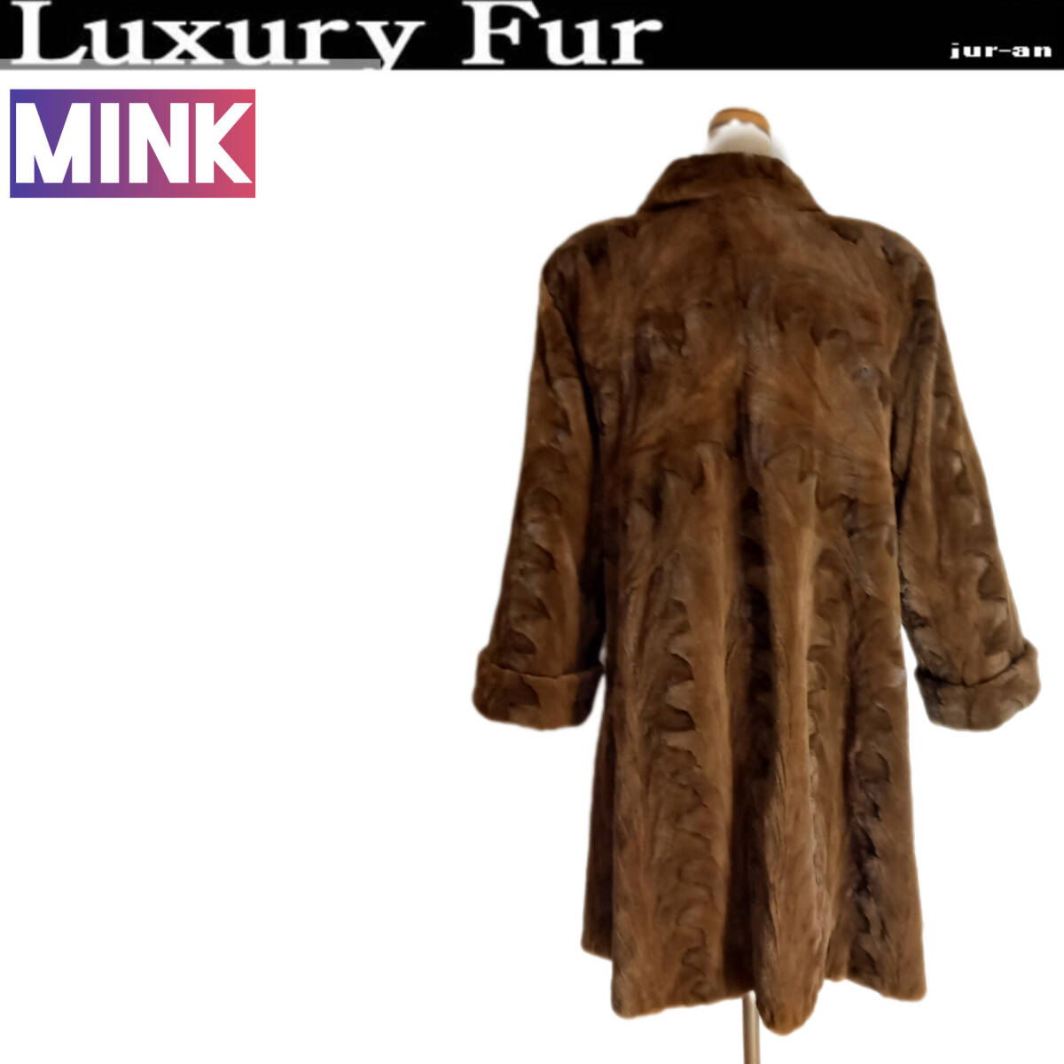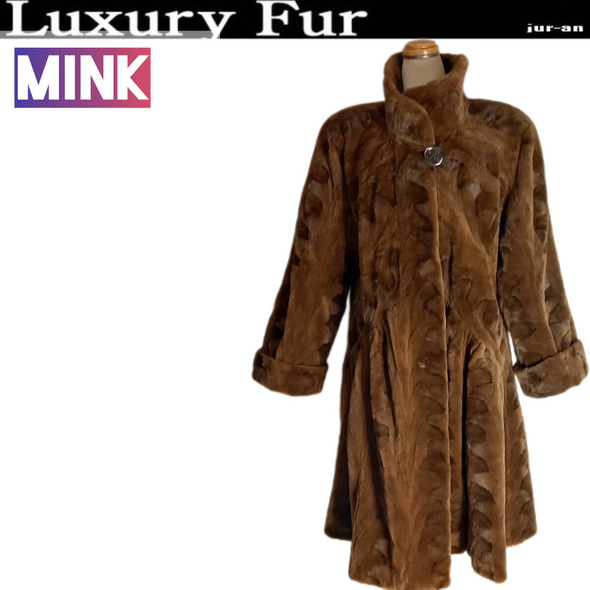 【毛皮●jur-an】特別企画・SALE!!! 普段にも使い易いベルベットの様な風合いの毛皮! フレアたっぷりエレガントの極☆ シェアードミンクデザインセミロングコート カラー:ブラウン | |