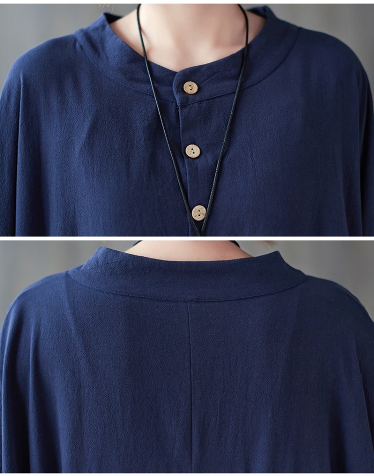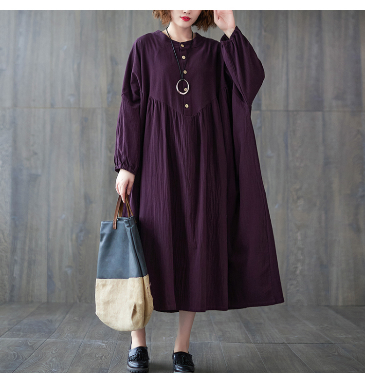 「同梱1万円送料無料」秋*新作*カジュアル*オシャレ*ゆったり大きいサイズ*体型カバー*綿麻*無地*長袖*ロングワンピース*F 紫系