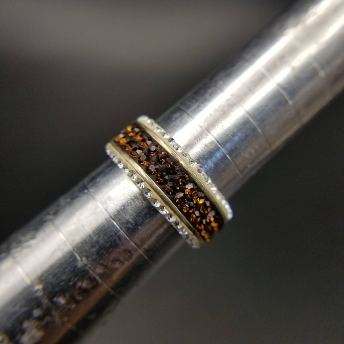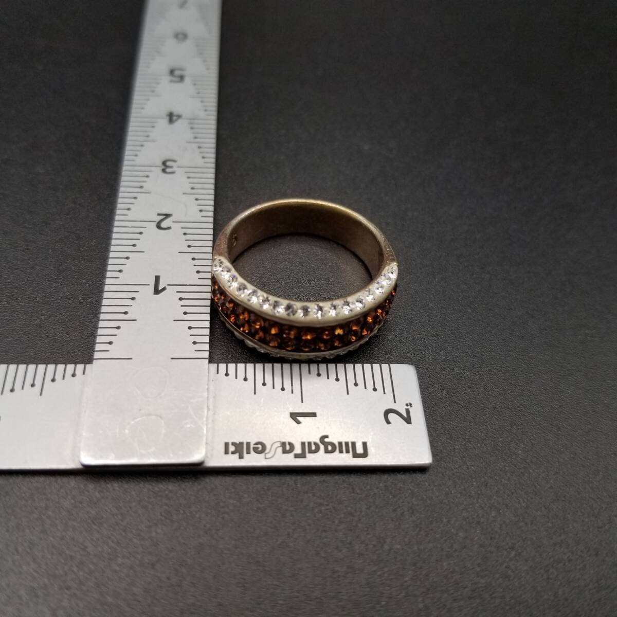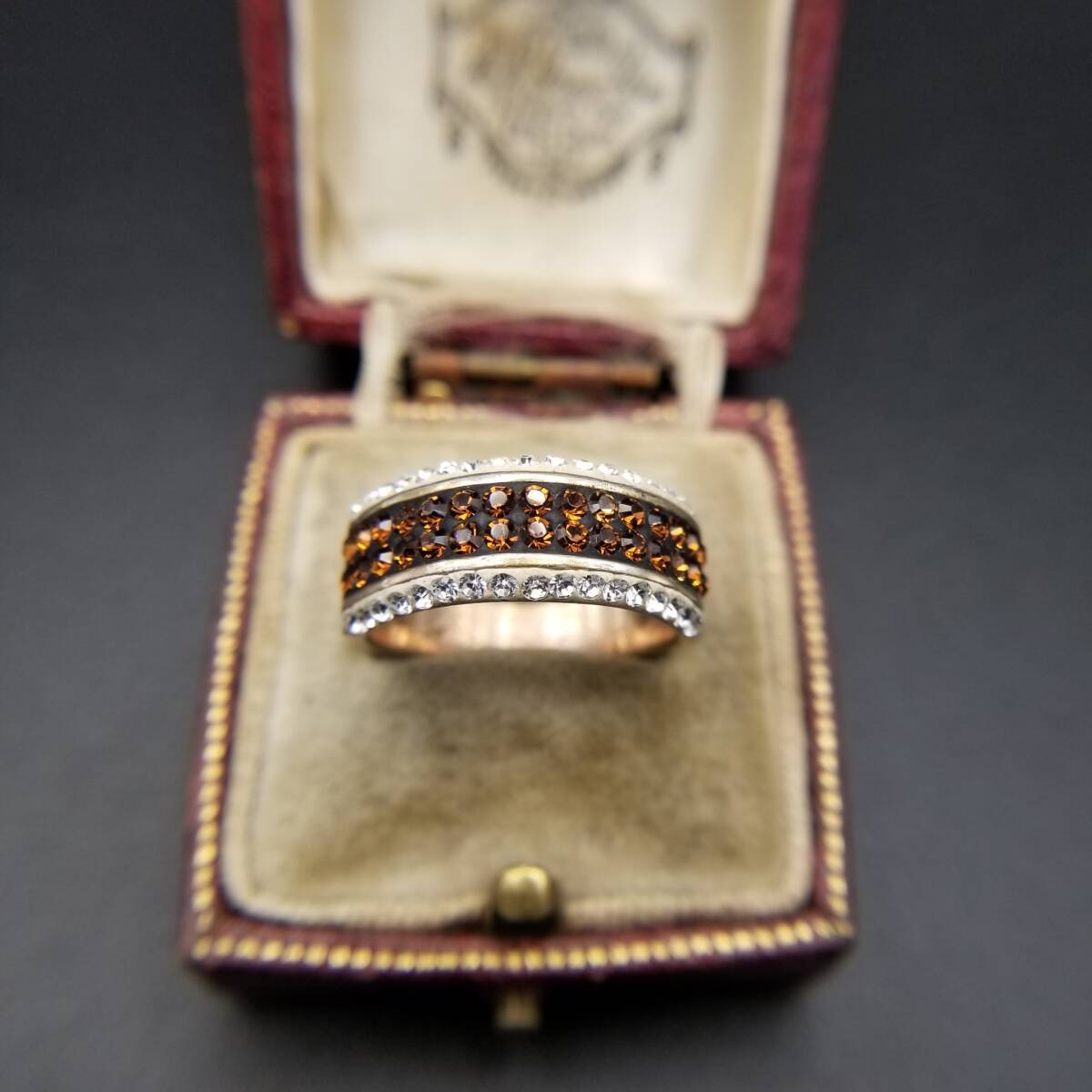 クリア/オレンジラインストーン レイヤー ハーフエタニティ ヴィンテージ リング 幅広 指輪 ゴージャス ファッションジュエリー Y18-L