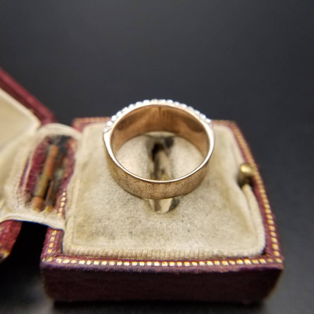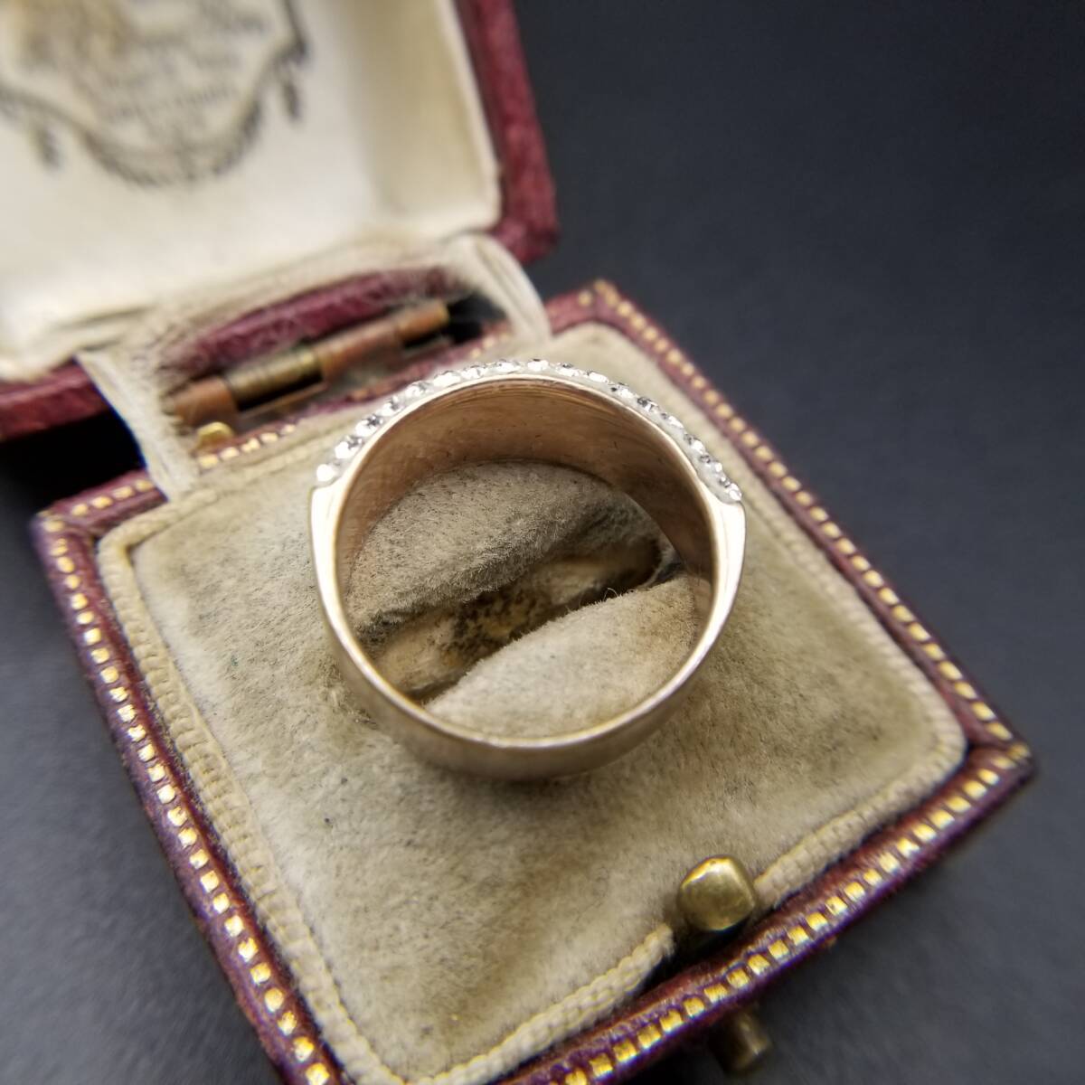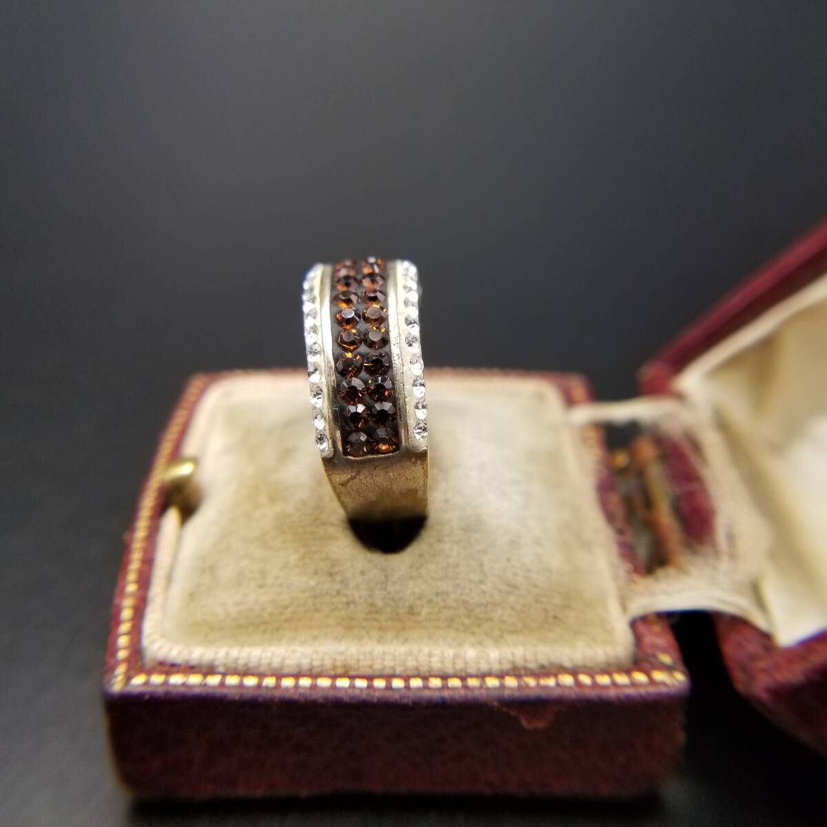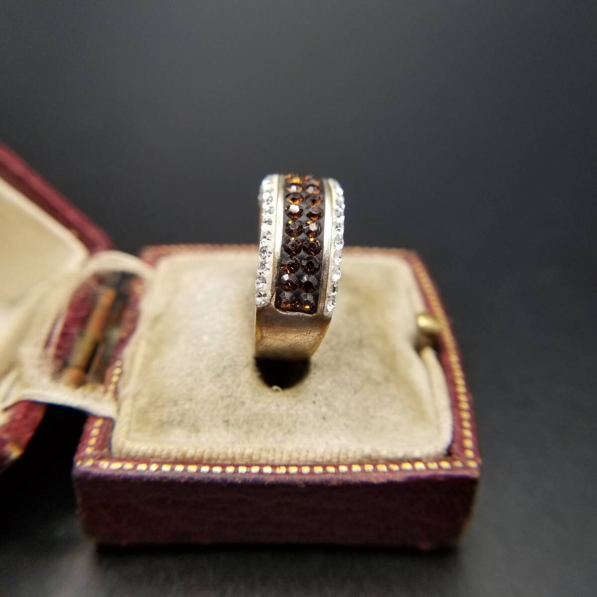 クリア/オレンジラインストーン レイヤー ハーフエタニティ ヴィンテージ リング 幅広 指輪 ゴージャス ファッションジュエリー Y18-L