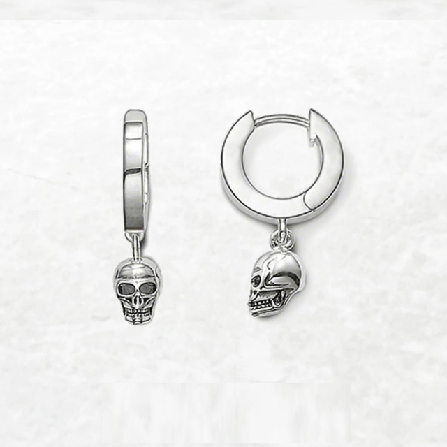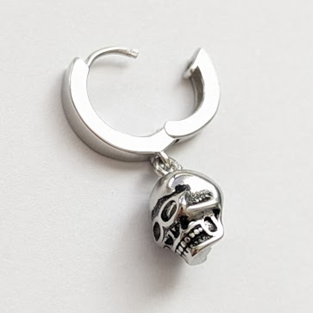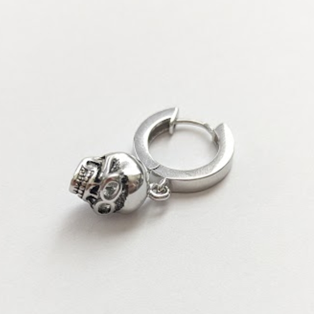 No17 シルバー925デザインリングピアス メンズ スカルデザイン ドクロピアス 片耳ワイルドデザインリングワンタッチピアス シルバーピアス