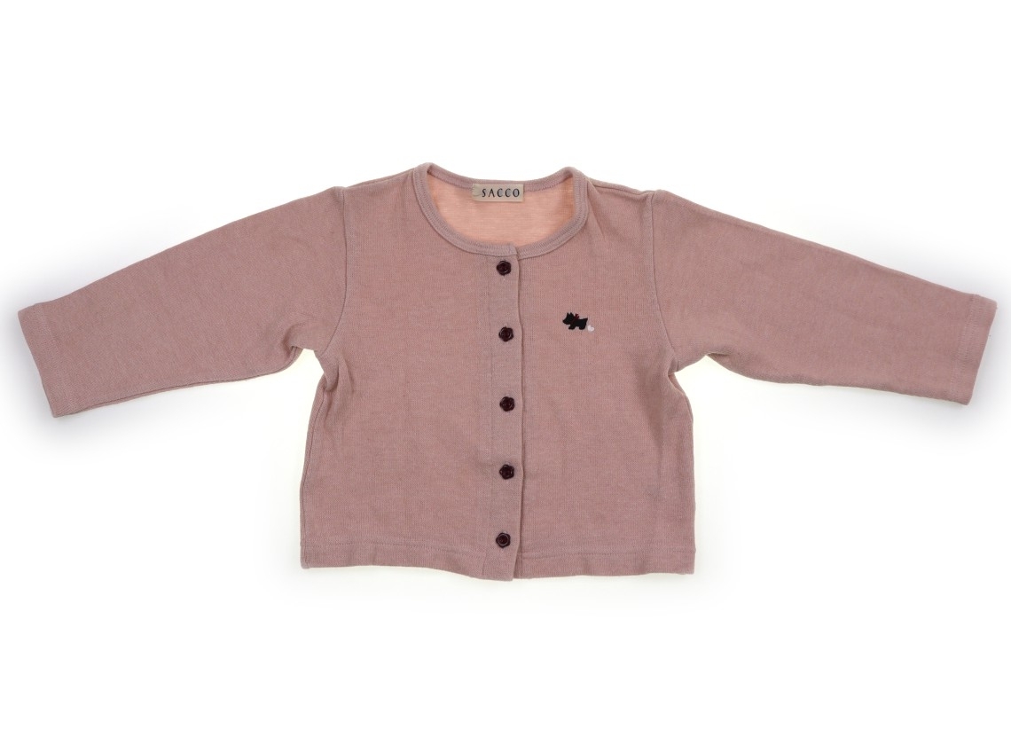 アクリルコットンニット素材の厚めの生地。予備ボタン付きです。全体的に毛羽立ち、若干毛玉付着が見られます。普段使いにいかがでしょうか。