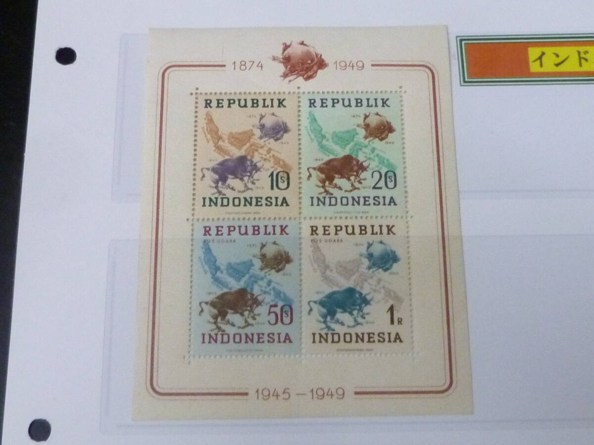 24L P №18 インドネシア切手 1949年 SC#65b+加刷違2種  有目打 小型シート 計3種 未使用NH~LH・VF