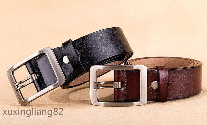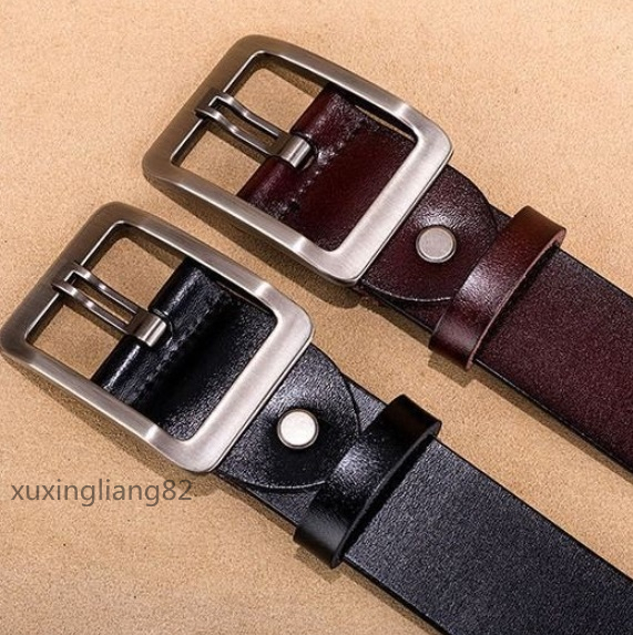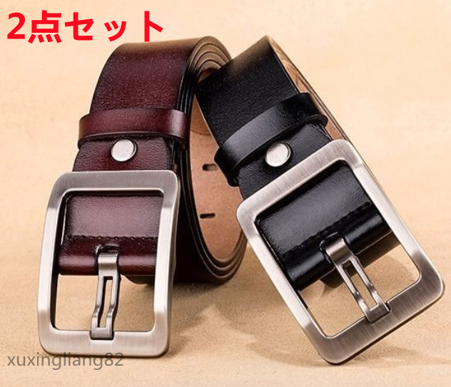 新販売 2点セット ピンバックル式 PUレザー ベルト ビジネス風 メンズ 金属バックル 紳士ベルト 黒×ブラウン