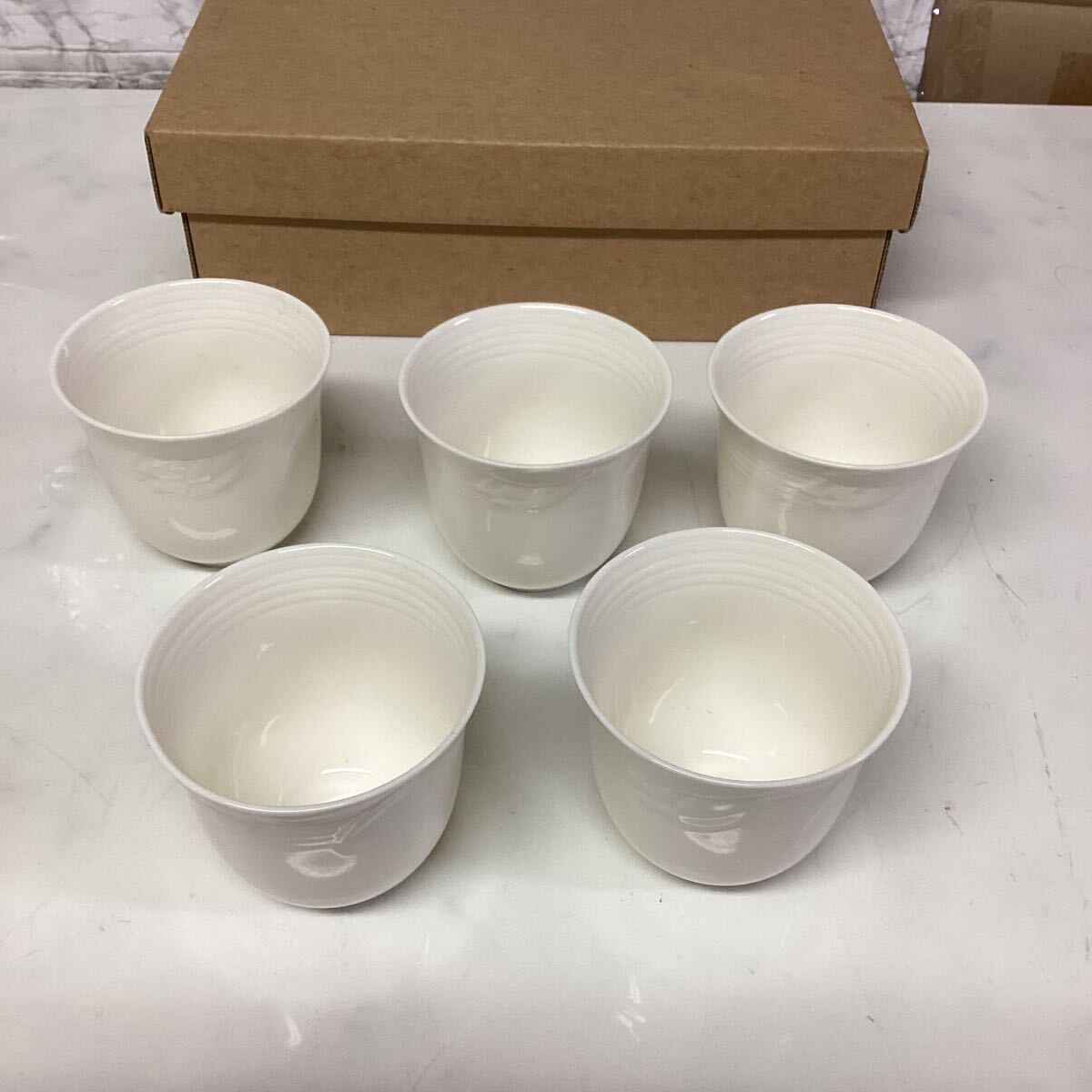 湯呑み 5客セット ホワイト 立体感 お茶 爽やか きれい 約7.5センチ A2