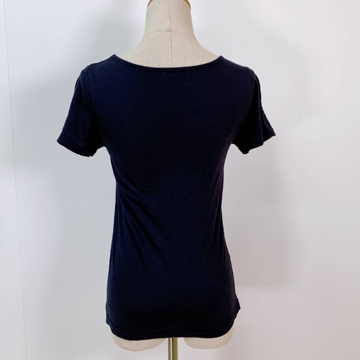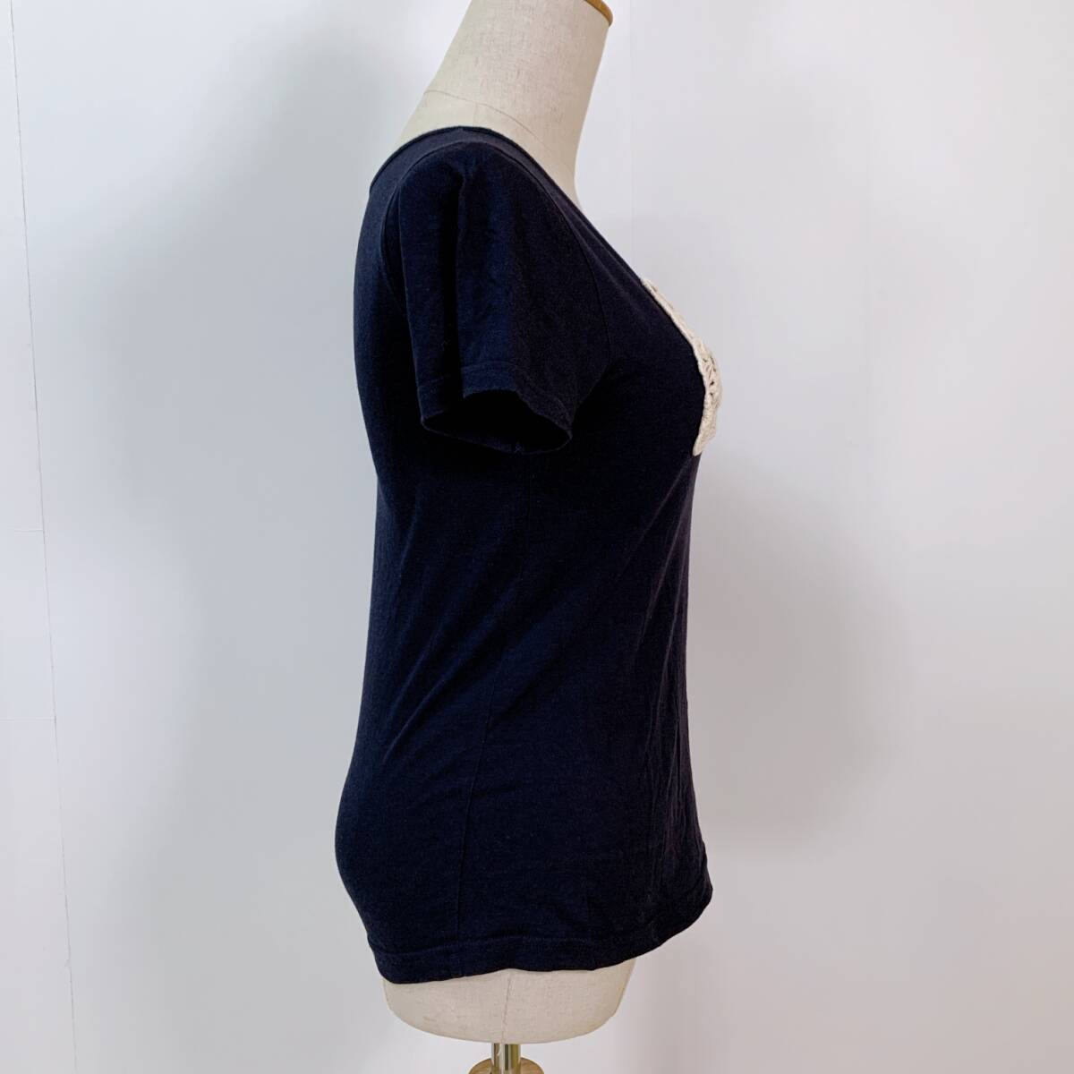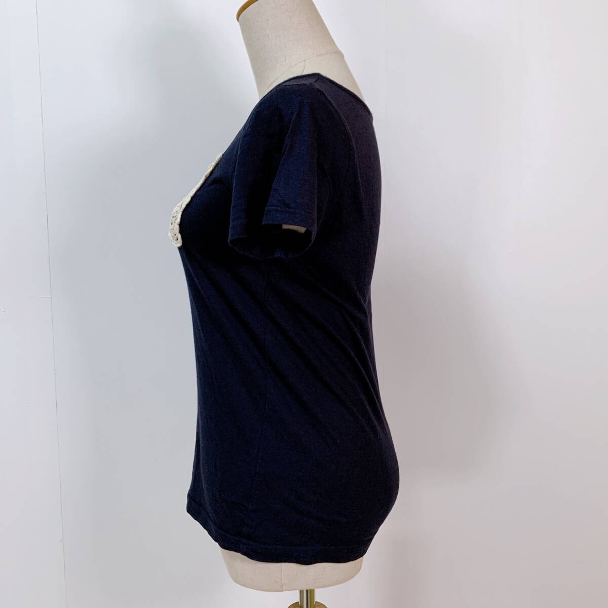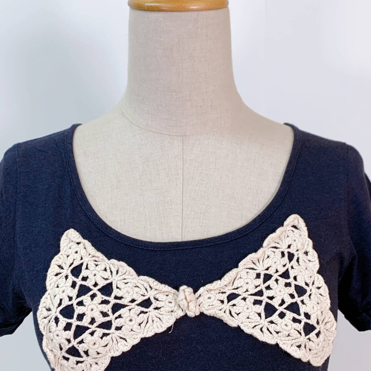 YH1171 earth music & ecology アースミュージックアンドエコロジー レディース 半袖 Tシャツ リボン刺繍 Sサイズ 丸首 万能 USED 古着