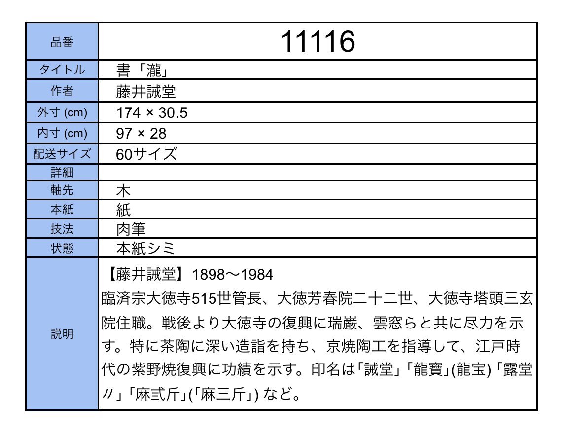 【模写】吉】11116 藤井誡堂 書「瀧」 臨済宗 大徳寺515世管長 塔頭 三玄院住職 仏教 茶掛け 茶道具 禅語 掛軸 掛け軸 骨董品