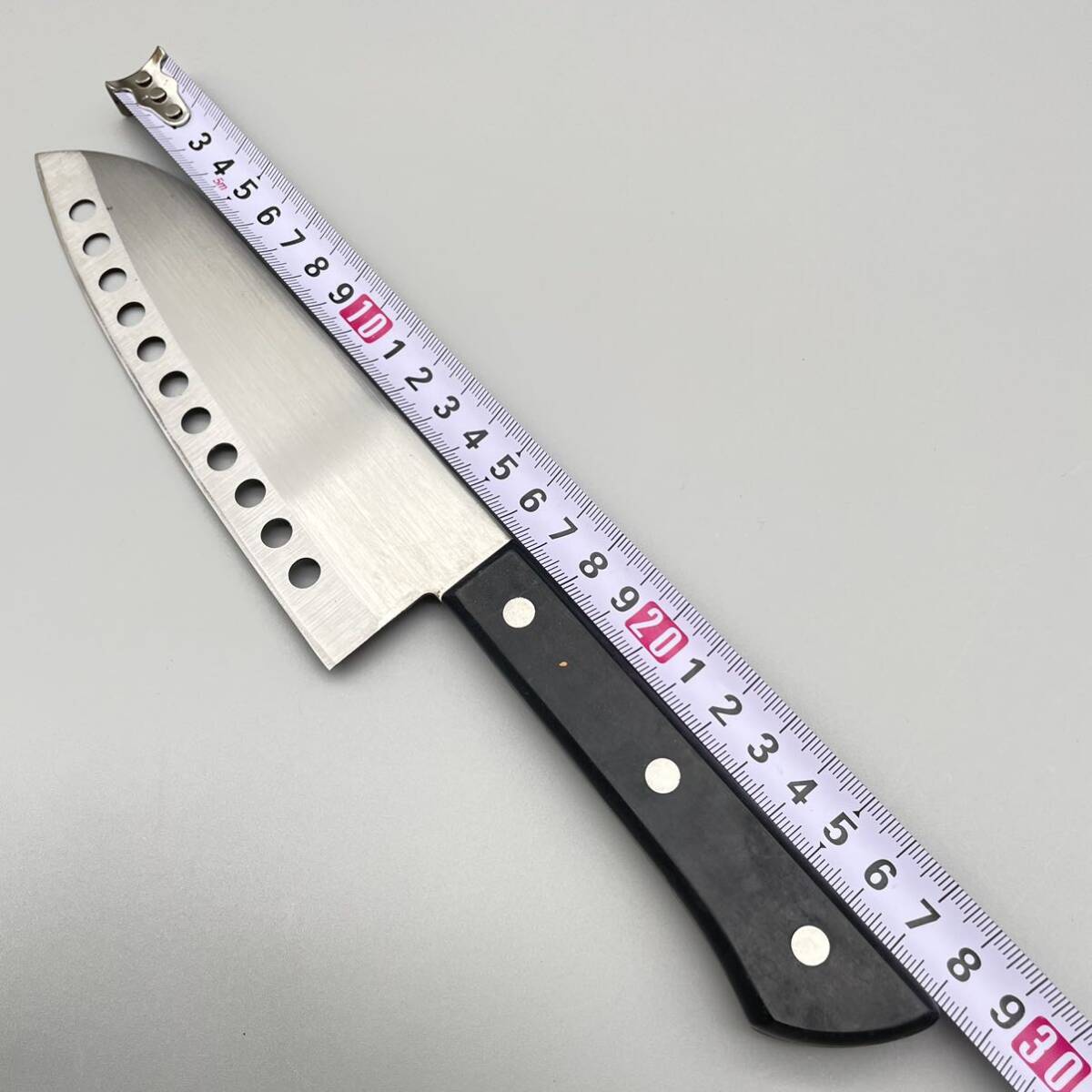 【送料全国一律360円】穴あき 包丁 刃渡り 約16.7cm 全長 約28.7cm 牛刀 万能 三徳 切れ味 良好 研ぎ済み ステンレス 調理器具 料理道具