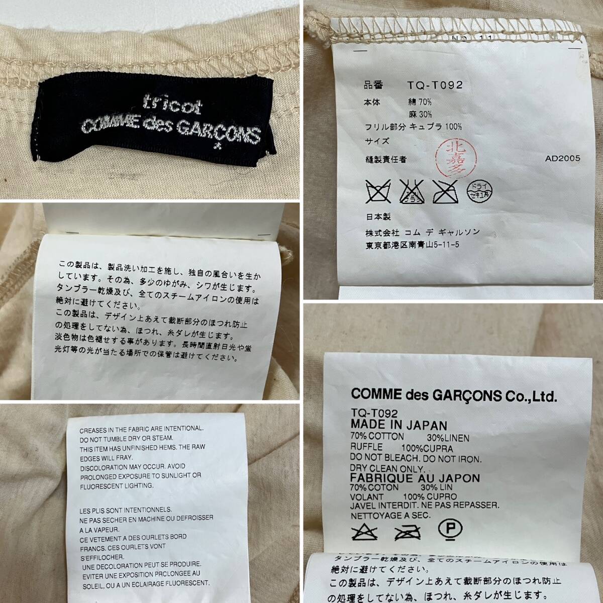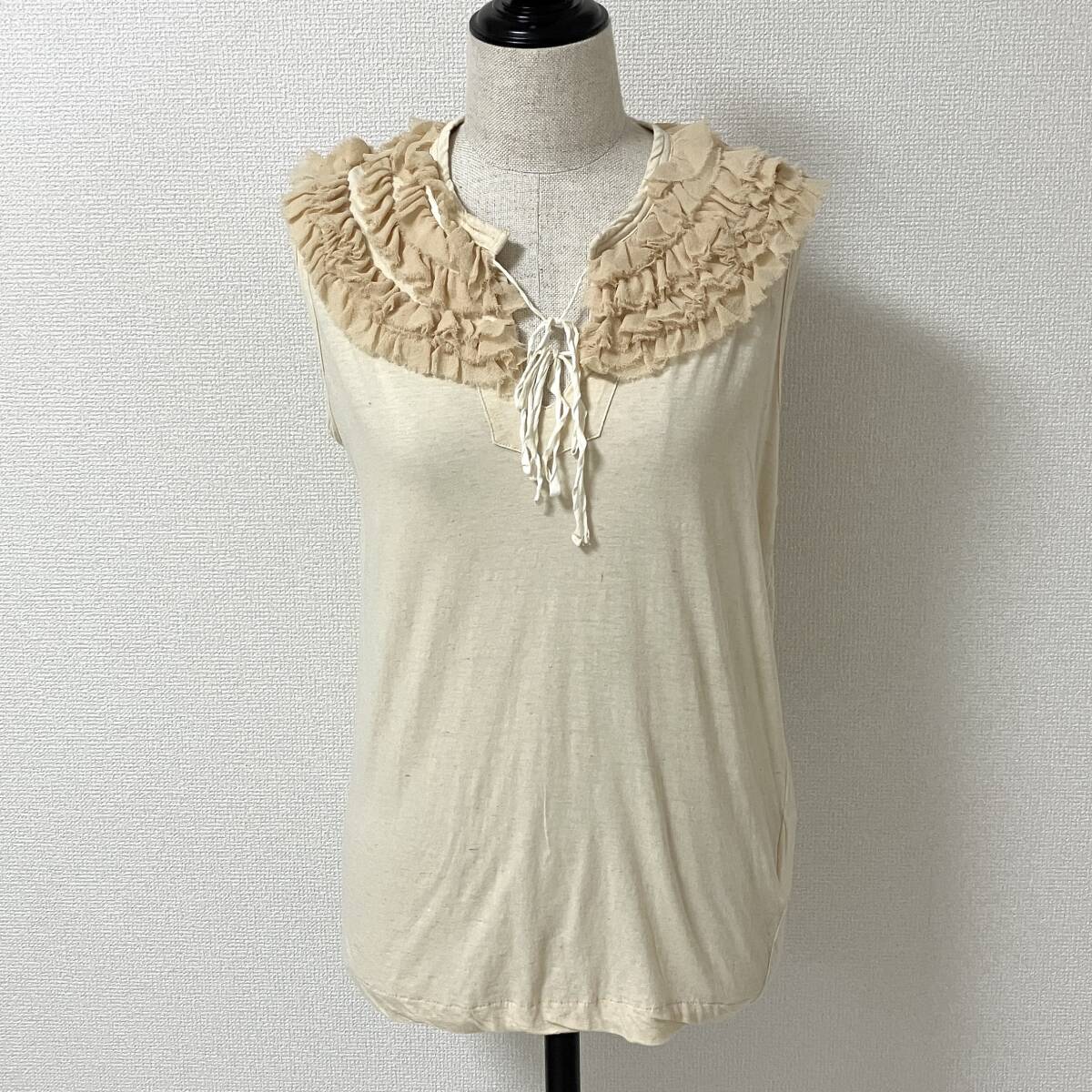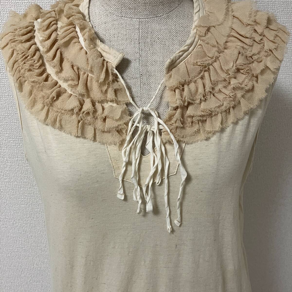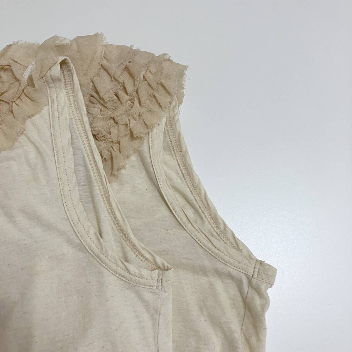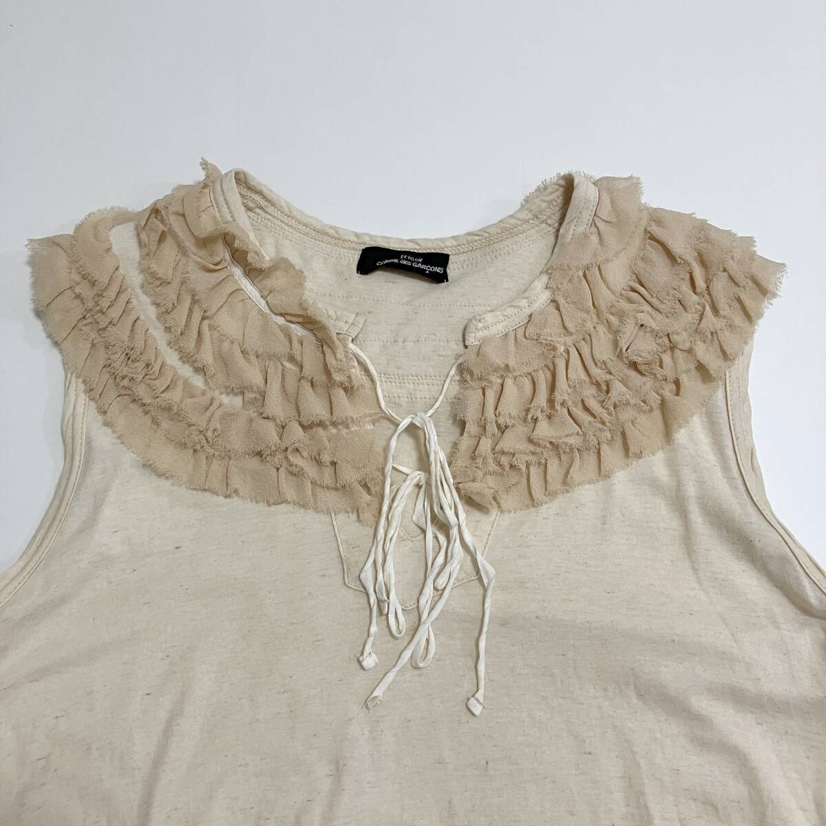 AD2005 tricot COMME des GARCONS リネン フリル リボン ノースリーブ カットソー 生成り トリココムデギャルソン archive 4080114