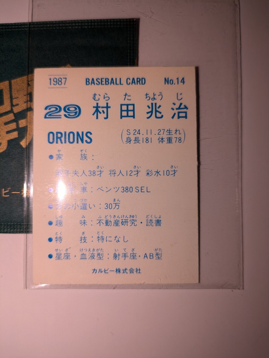 村田兆治 87 カルビープロ野球チップス No.14 ロッテオリオンズ