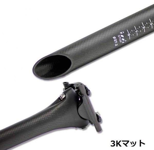 ◆3Kマットカーボン わずか175g±5gの超軽量シートポストです。