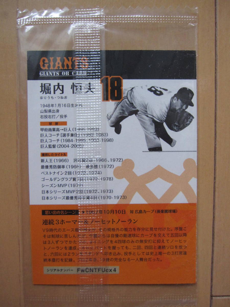 【ジャイアンツ/読売巨人軍18堀内恒夫】2013年4月4.5.6日ジャイアンツOBカード 限定配付・未開封品